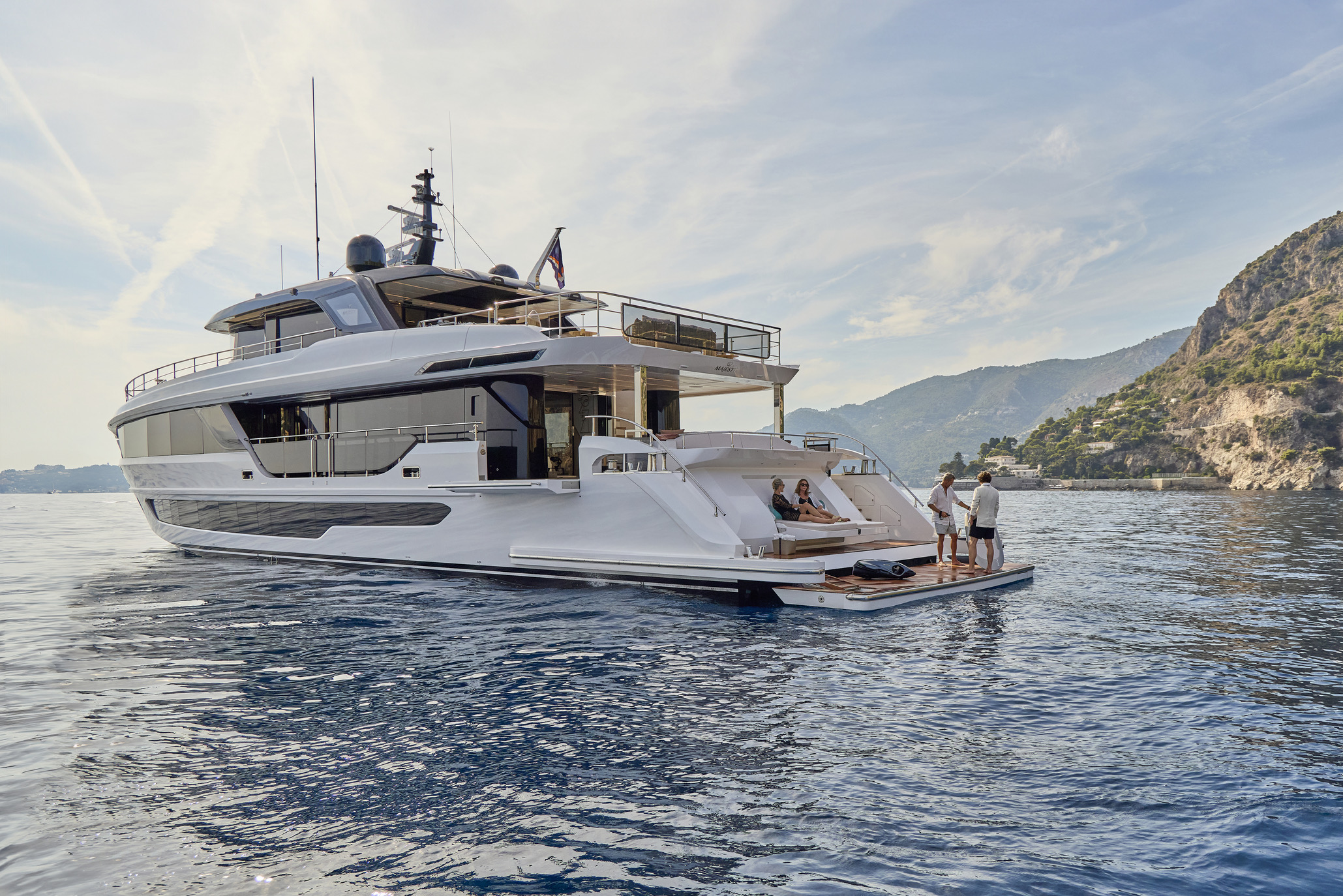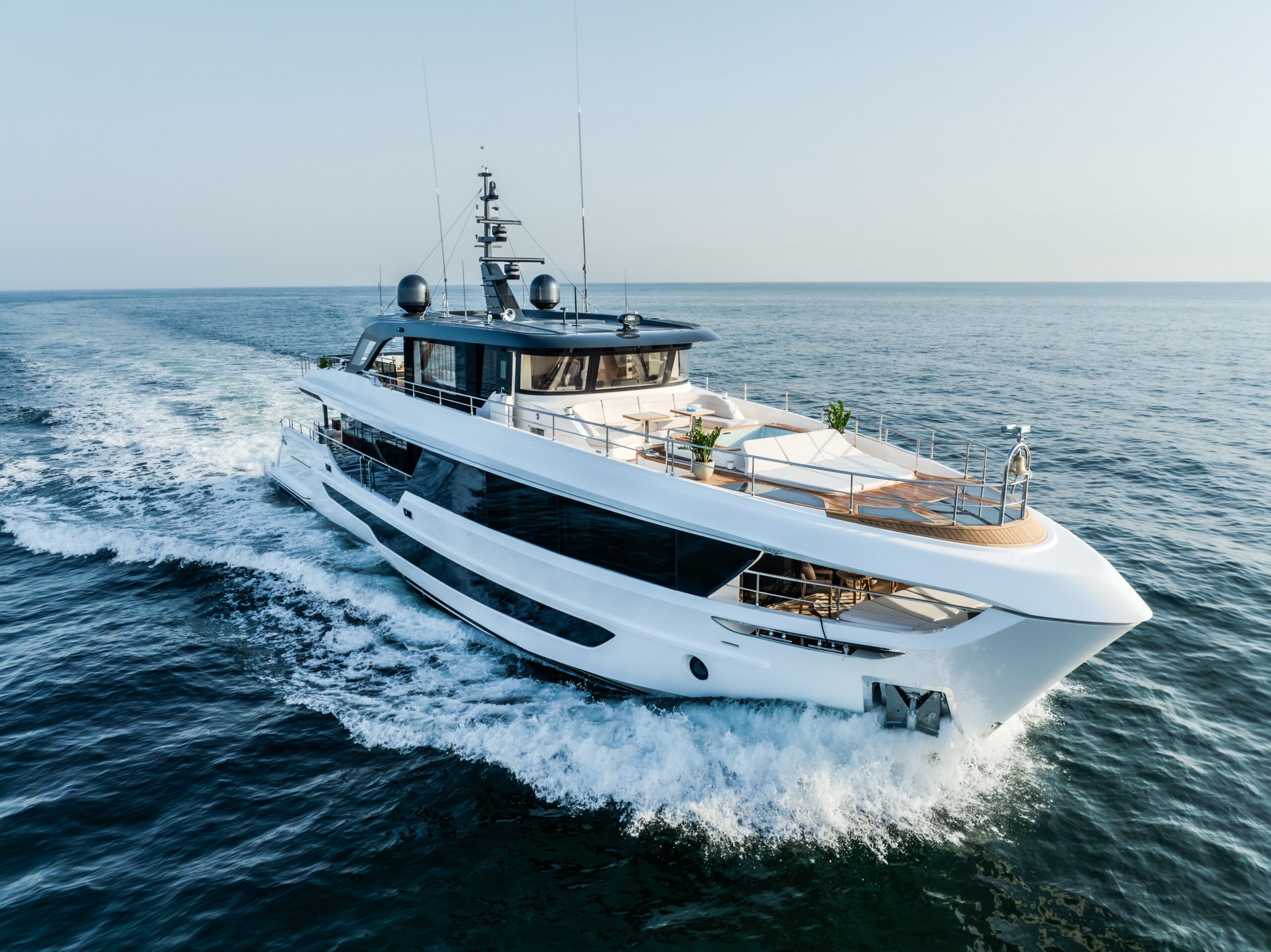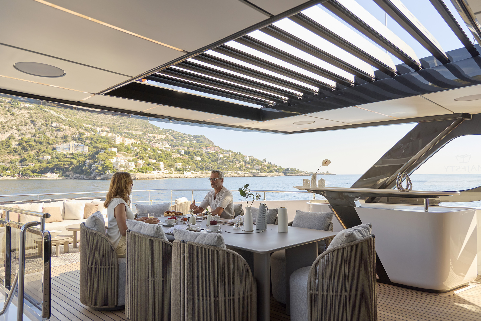 From the Mediterranean to the Caribbean, the Majesty 100 Terrace delivers an effortless yachting experience, combining sleek aesthetics with fuel-efficient performance for smooth and powerful cruising.