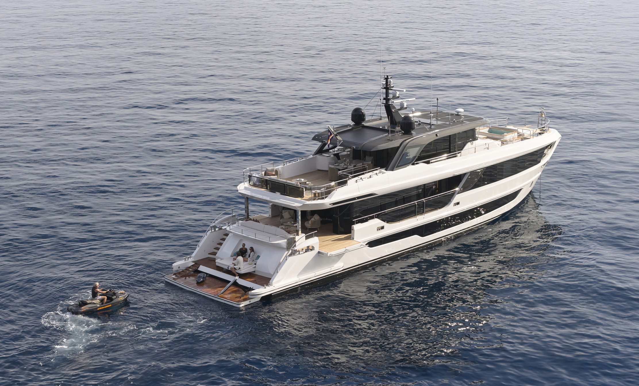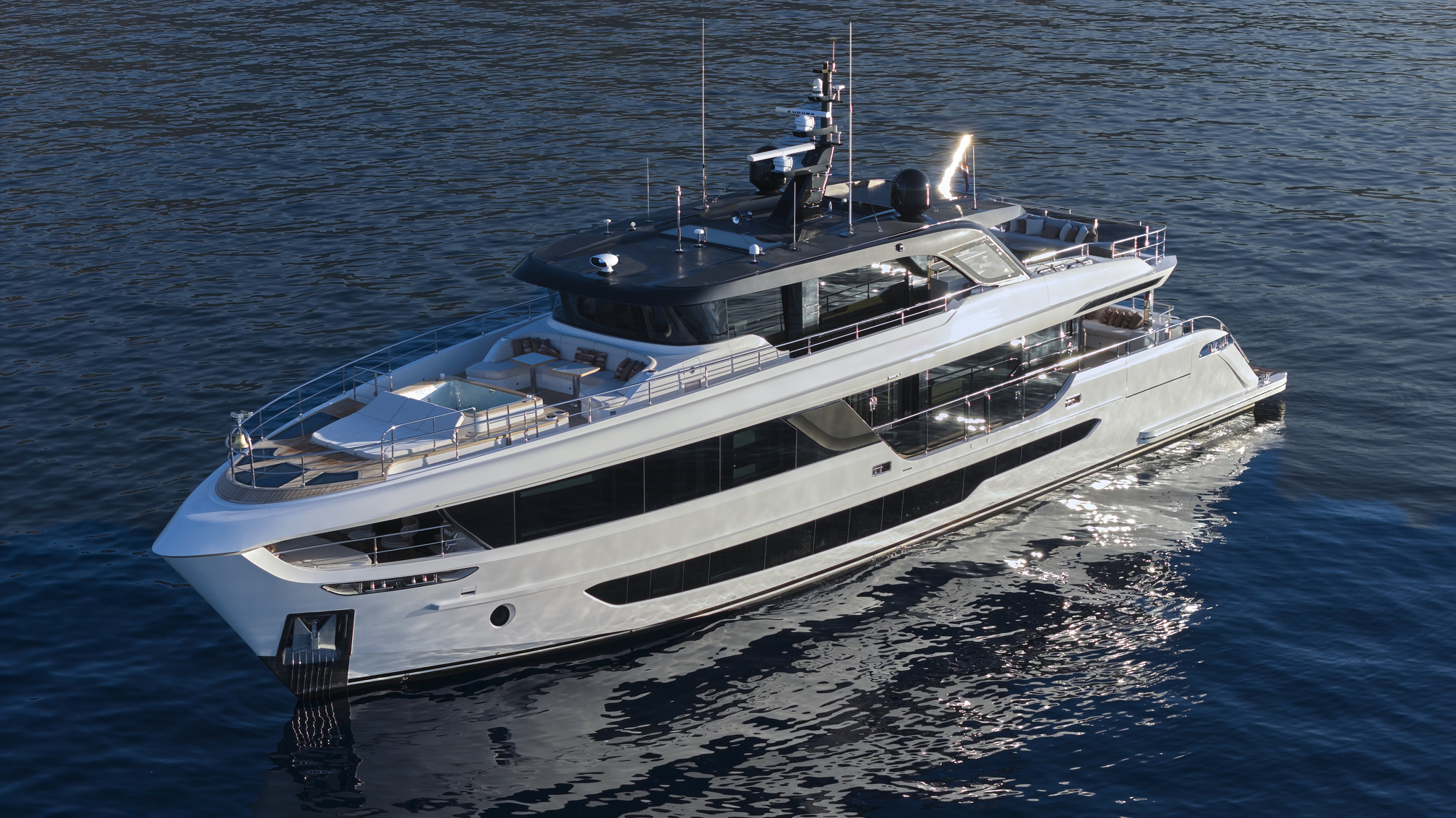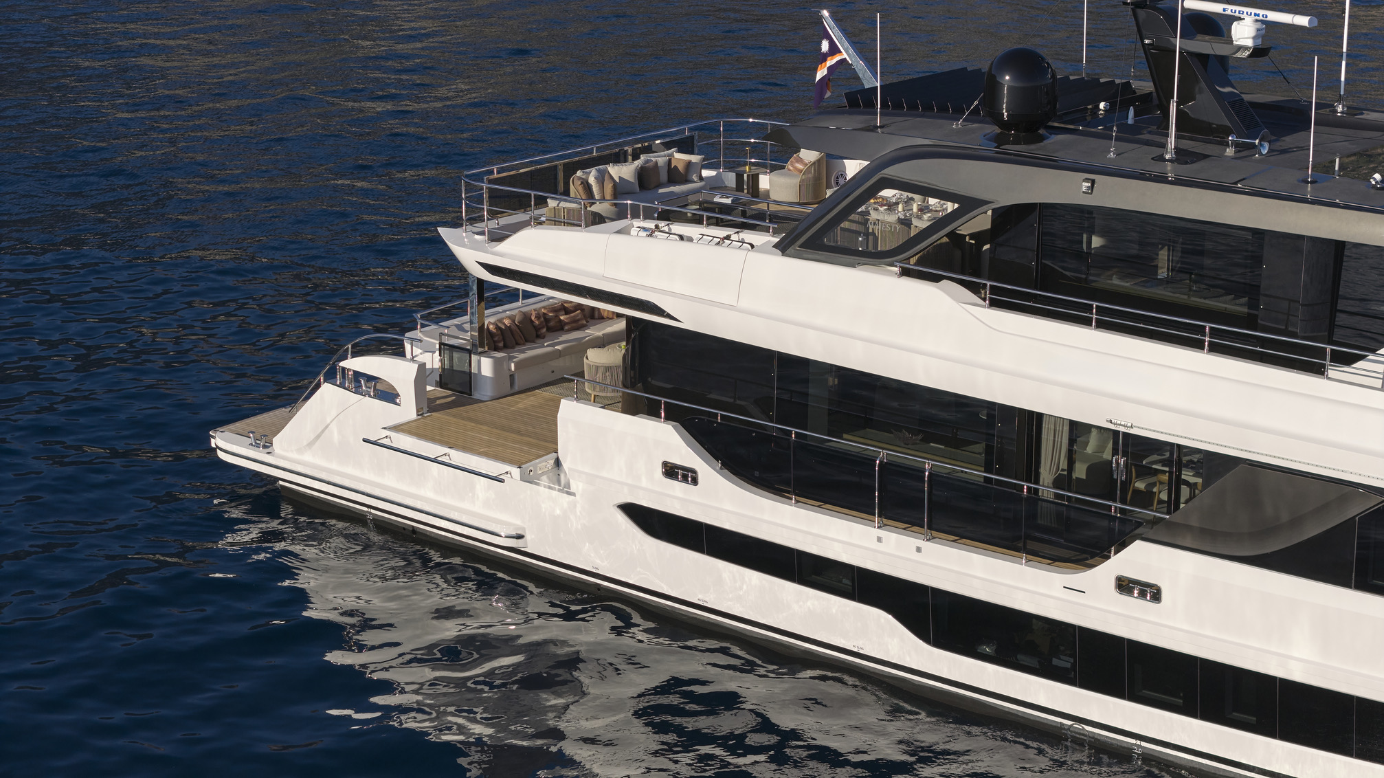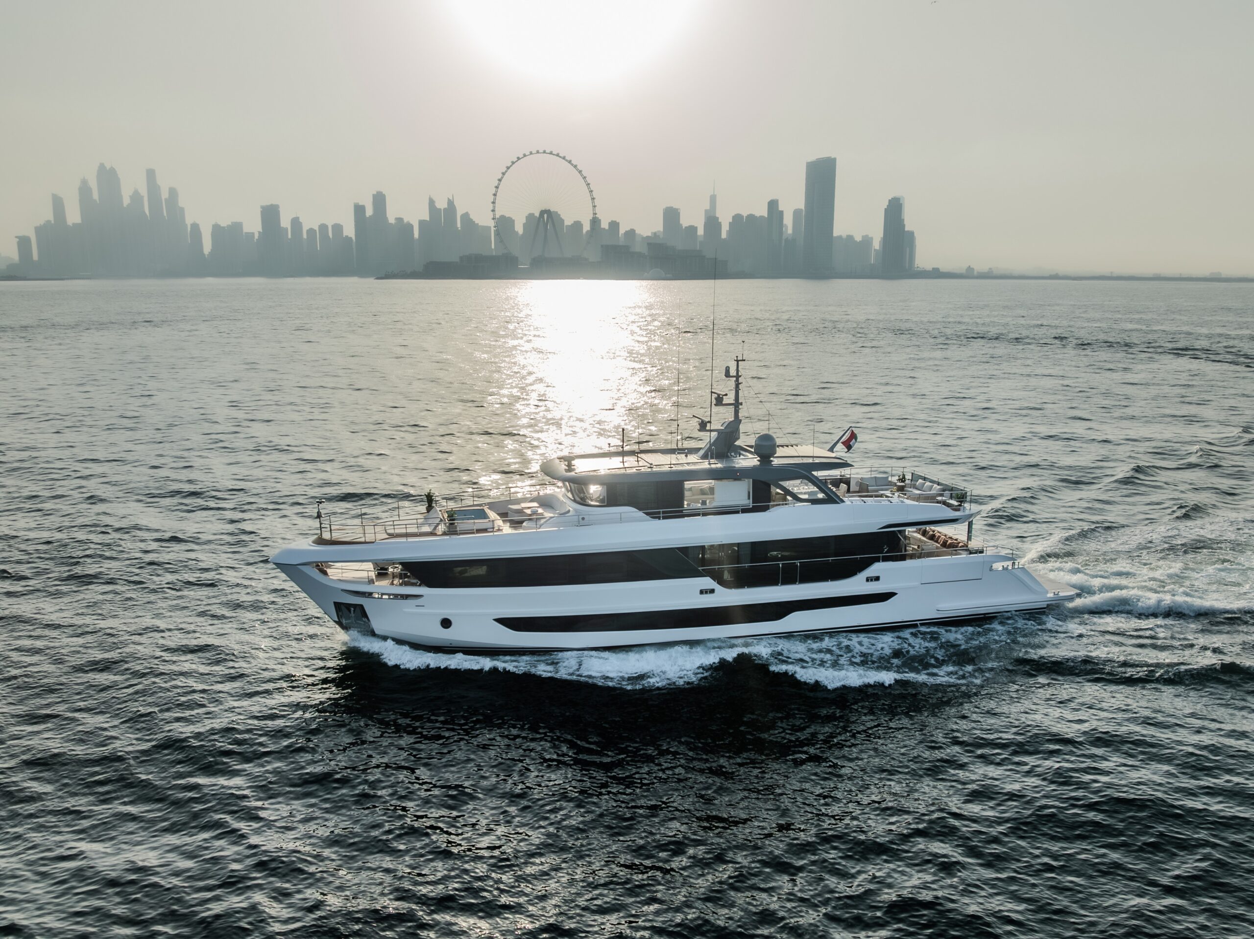 The Majesty 100 Terrace is a masterpiece of modern design and craftsmanship, building on its legacy as one of the most celebrated models in Majesty Yachts' history. With its sleek silhouette and bold presence, this superyacht is not just another luxury vessel—it's a statement of refined elegance and innovative design. The Majesty 100 Terrace combines effortless grace with cutting-edge technology, delivering a sleek, bold silhouette and 199GT of pure elegance.