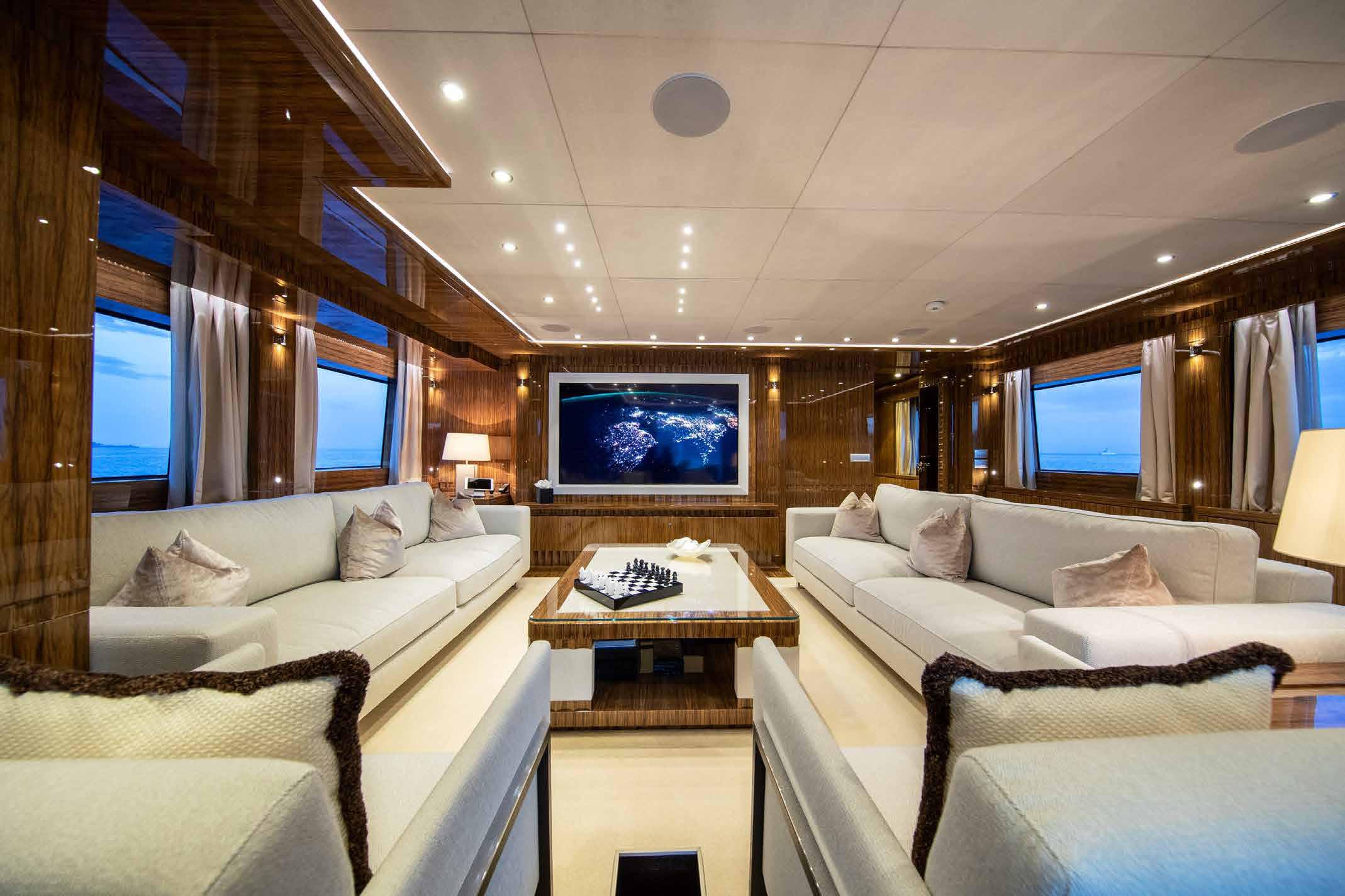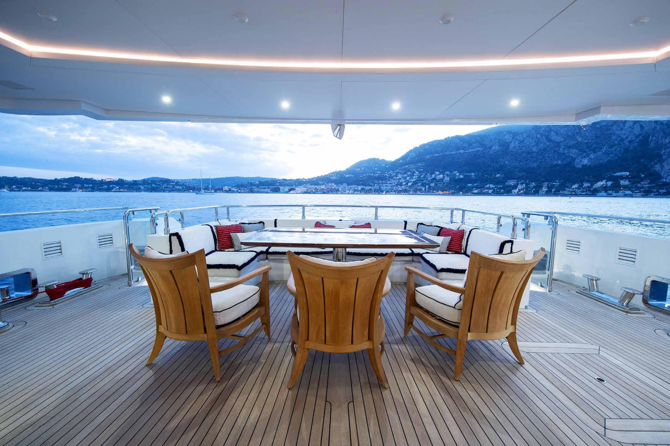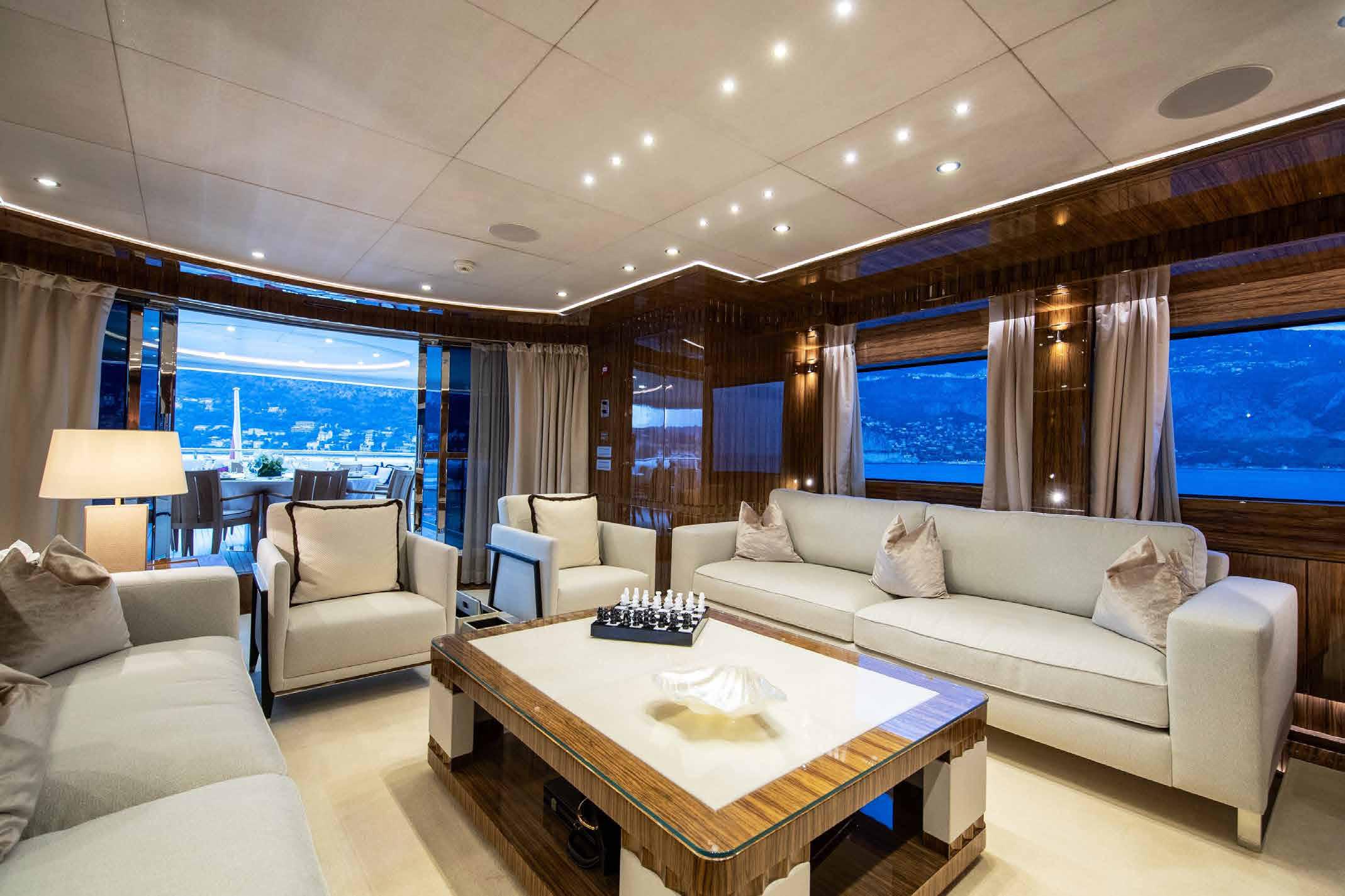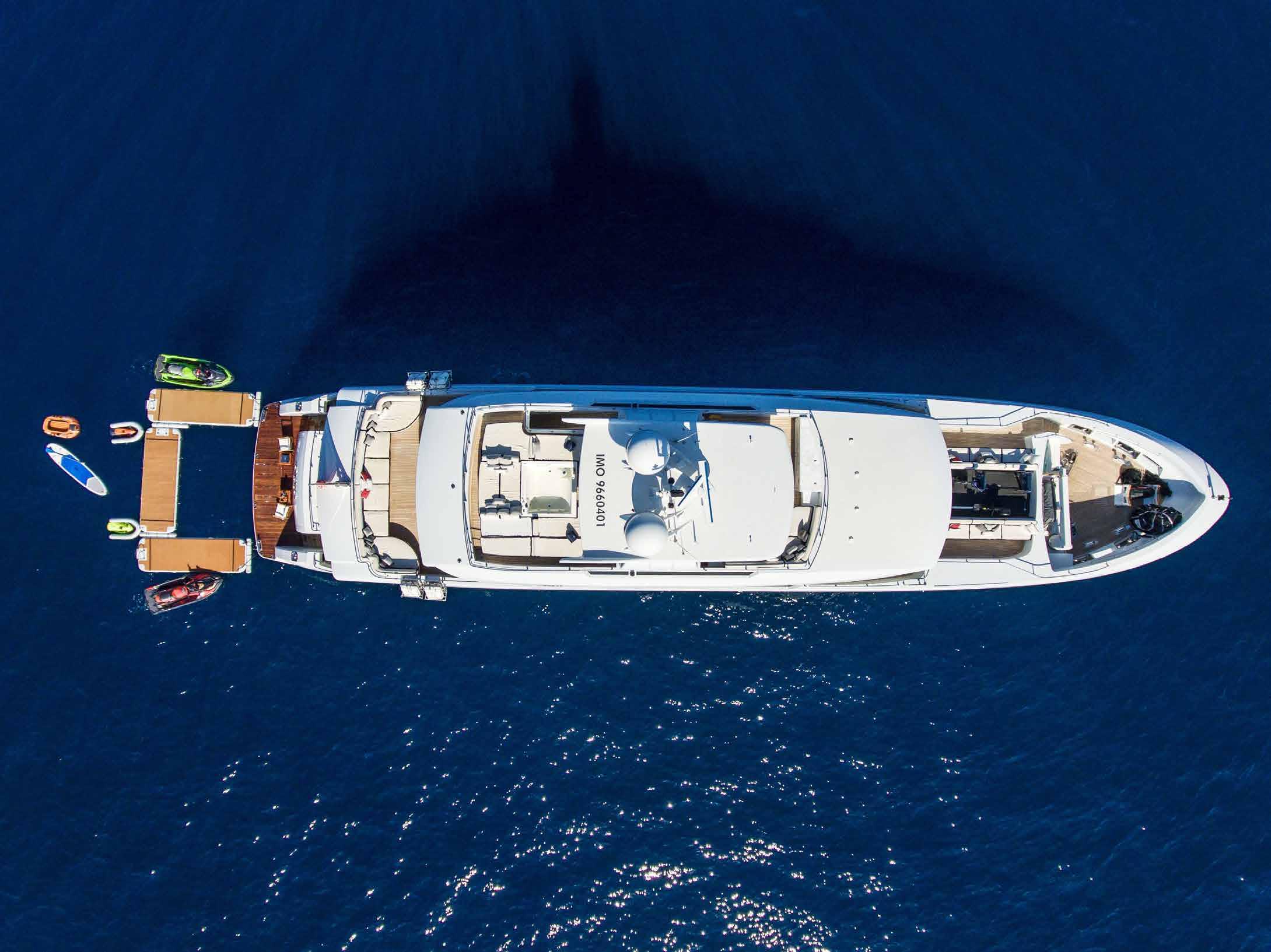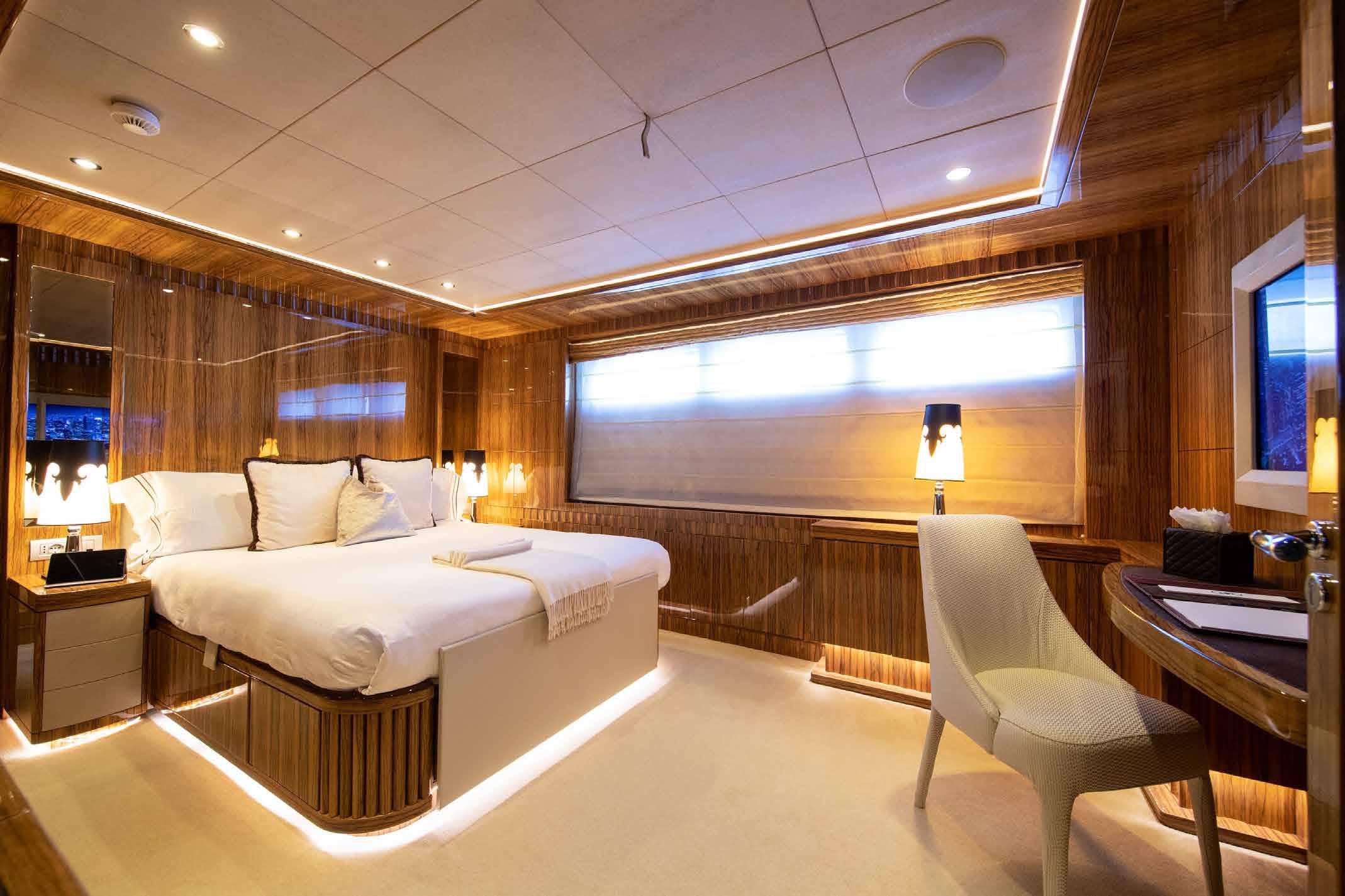 Her interior and exterior were designed by Giorgio Vafiadis who created a luxurious yet contemporary result. Spacious 5 en-suite cabins including generous main deck Owner suite, and her crew of 8. Underway and zero-speed, Fin stabilizers will ensure excellent seakeeping capabilities whilst her low fuel consumption makes her very economical and environmentally friendly.