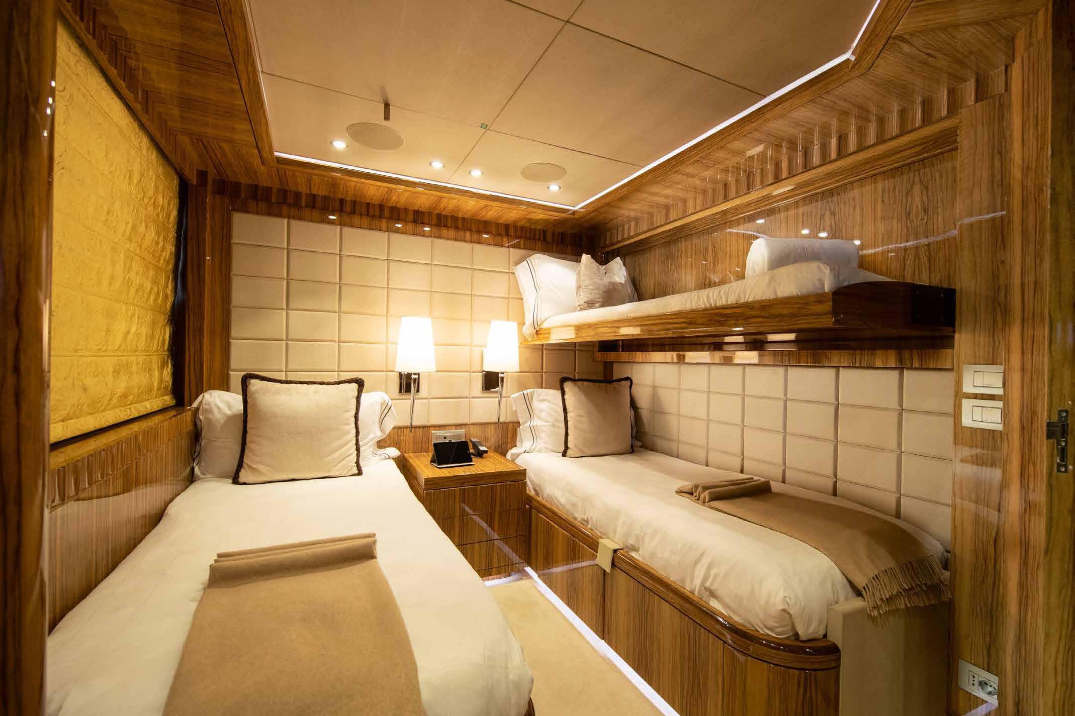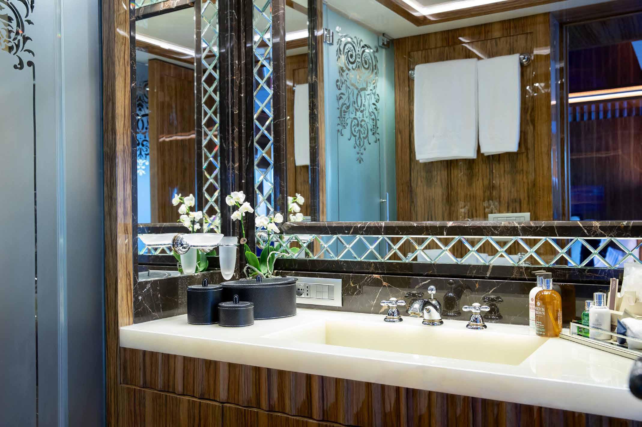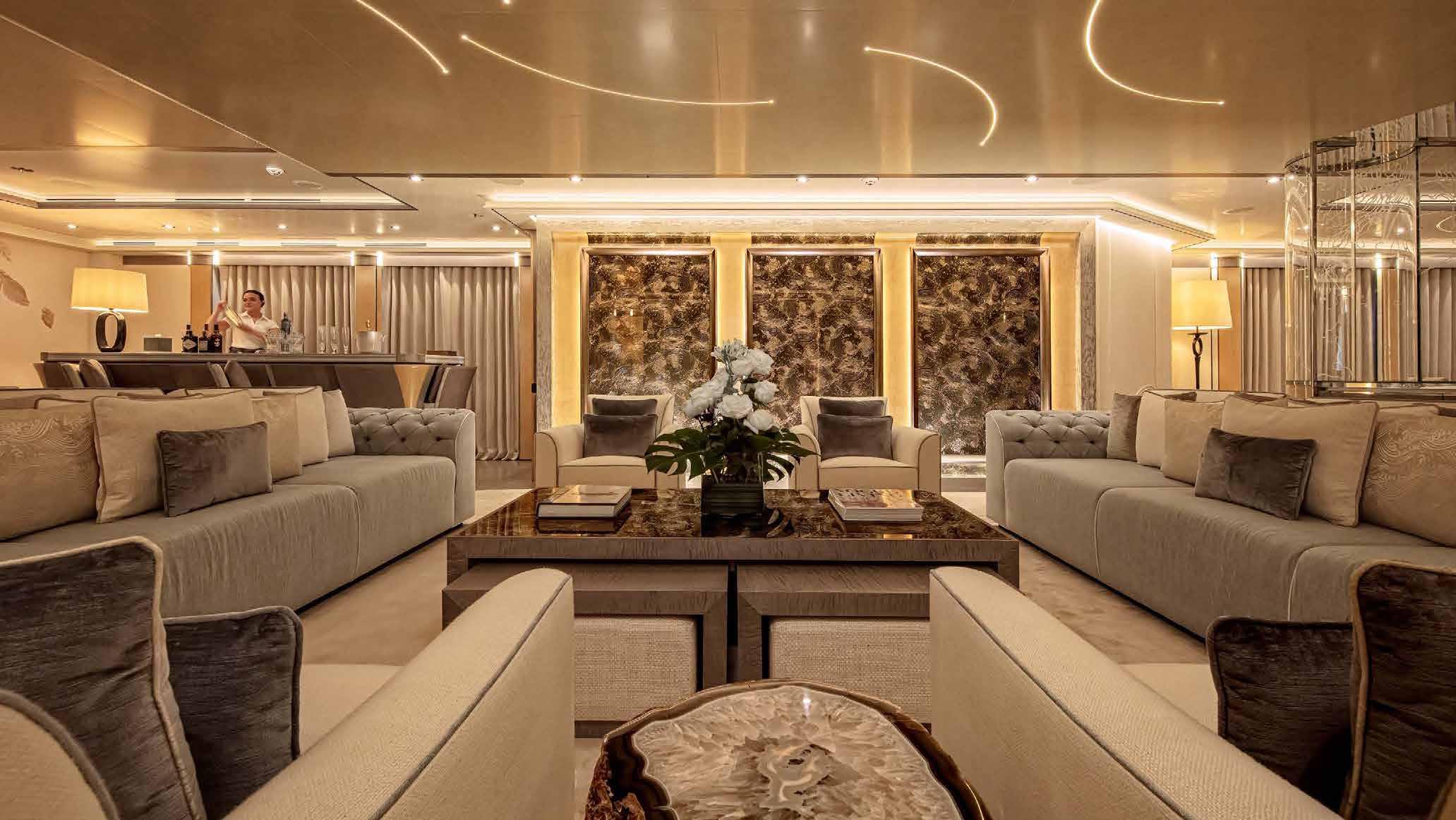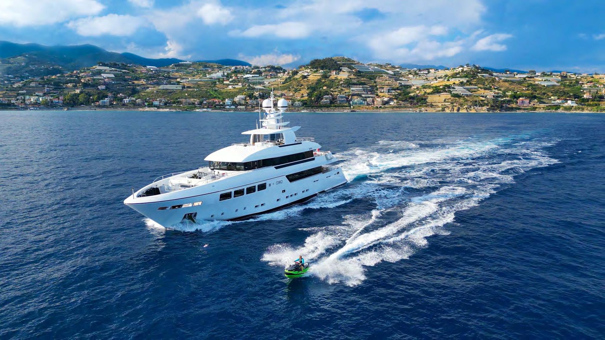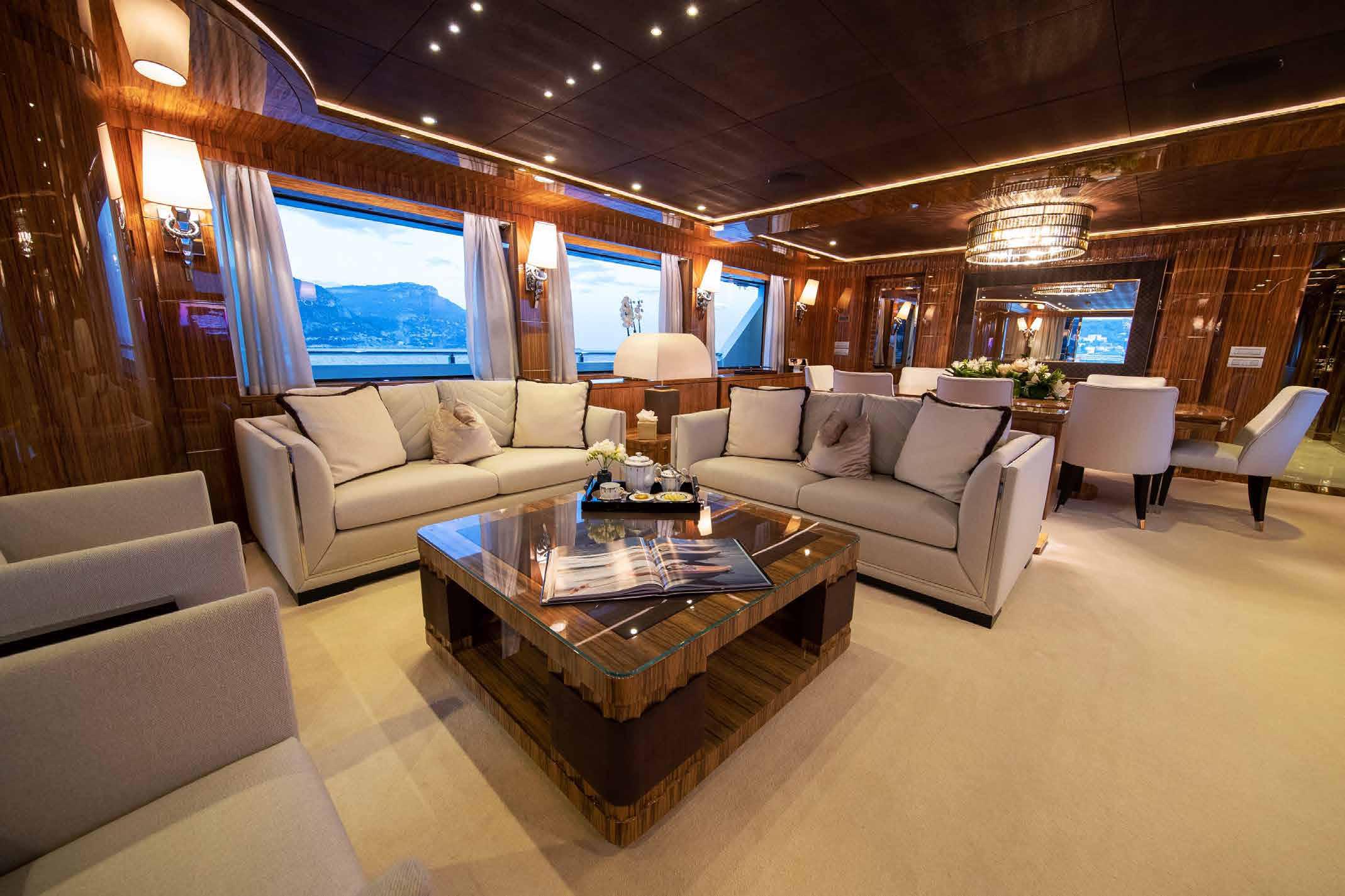 Her interior and exterior were designed by Giorgio Vafiadis who created a luxurious yet contemporary result. Spacious 5 en-suite cabins including generous main deck Owner suite, and her crew of 8. Underway and zero-speed, Fin stabilizers will ensure excellent seakeeping capabilities whilst her low fuel consumption makes her very economical and environmentally friendly.