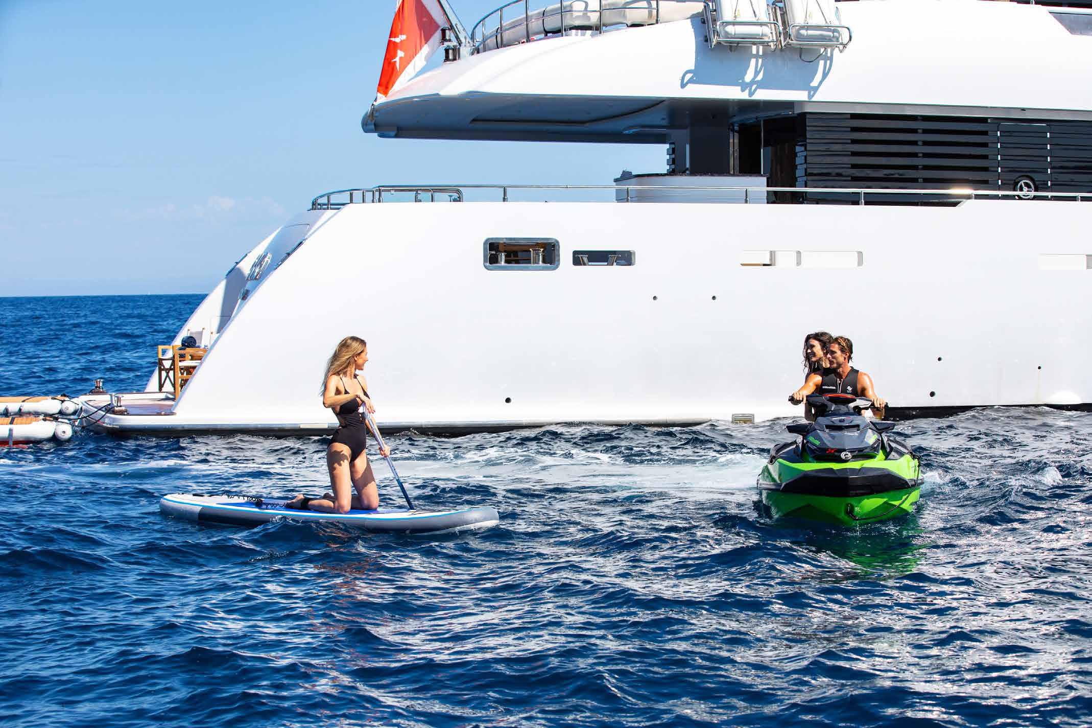Embark on your charter adventure uncover an array of activities for both relaxation and recreation. Maintain your fitness routine in the outdoor gym area, unwind in the jacuzzi with stunning views, and delve into a selection of water toys for enhanced enjoyment. Onboard, there's a delightful option for everyone.