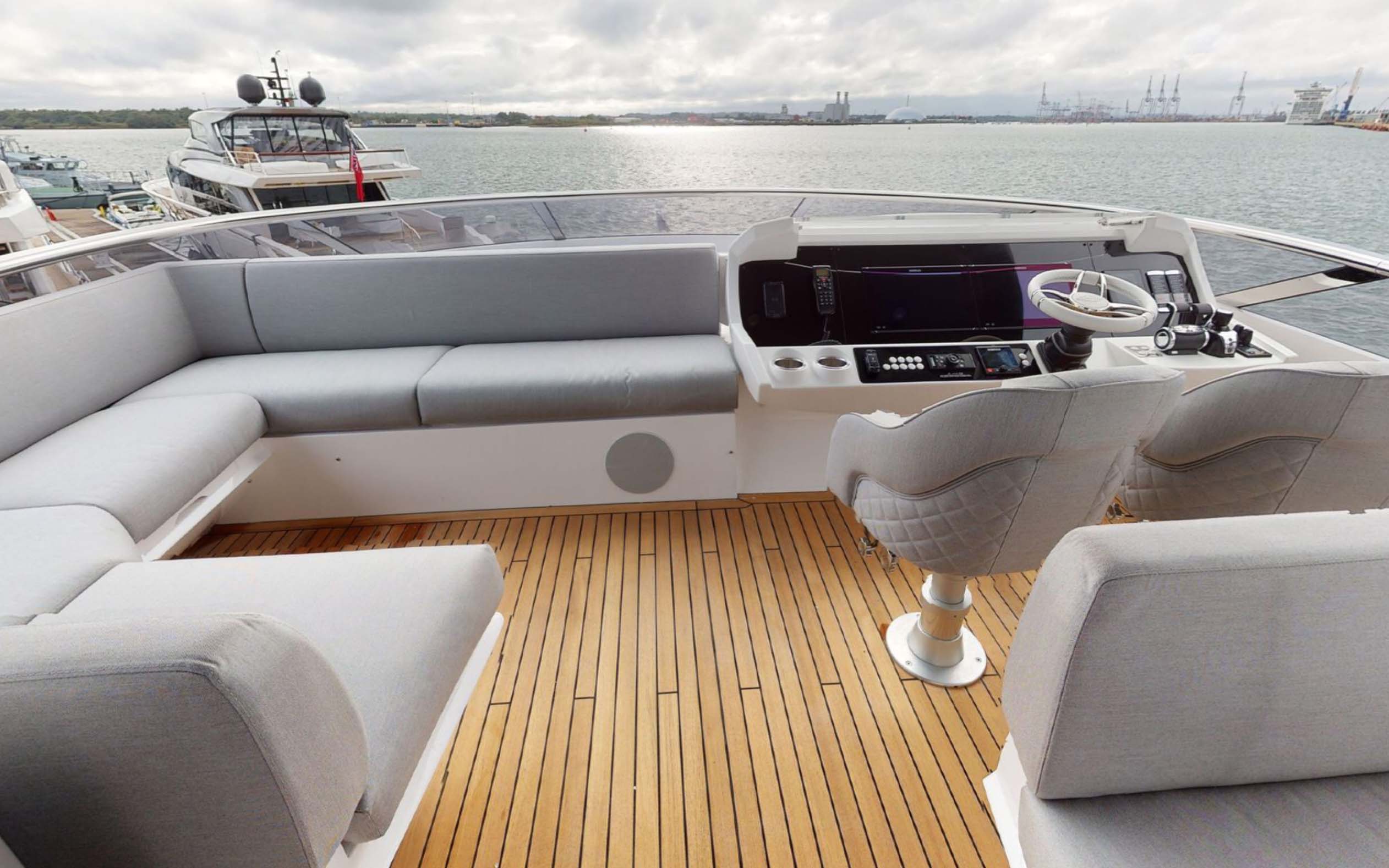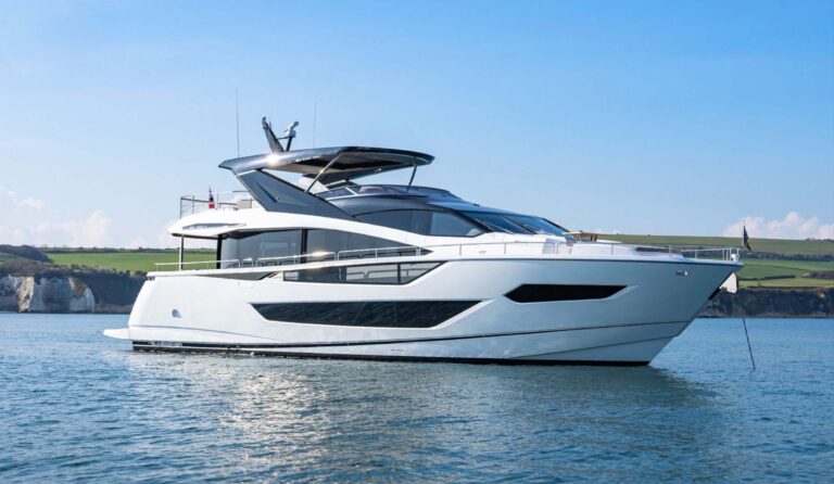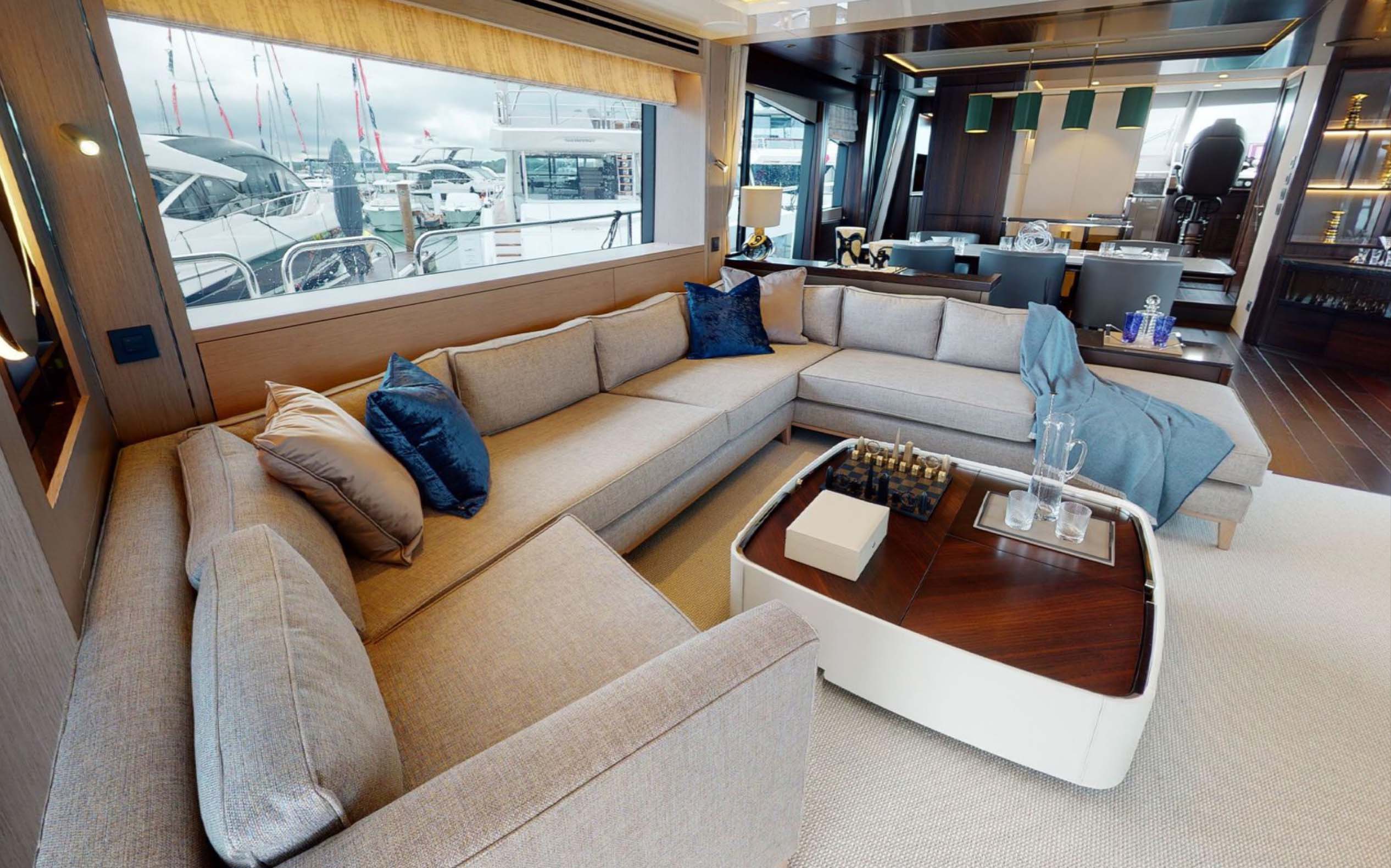 The 88 Yacht has impressive, and new to the brand, exterior lines and a sleek hardtop roof.