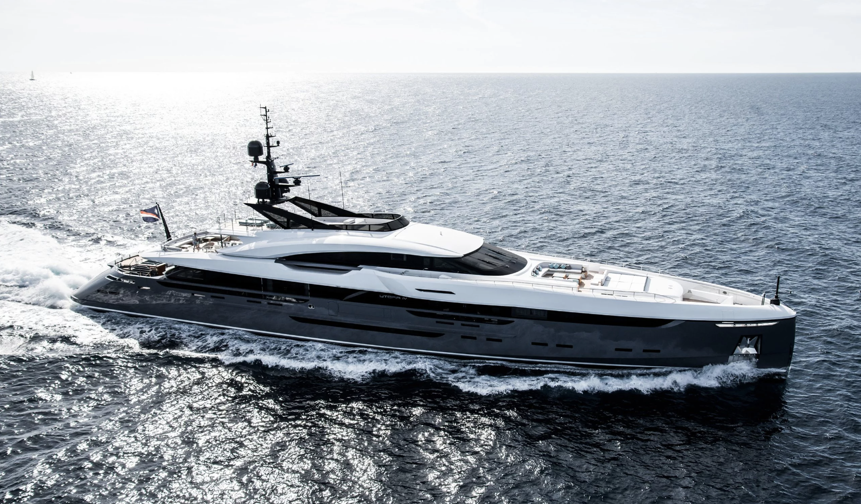 Delivered in 2018 by Rossinavi, UTOPIA IV is the harmonious balance of a luxurious superyacht and high-performance sport yacht. Fitted with four MTU 16V 2000 M96L engines that provide power to four Rolls Royce hydro jets, UTOPIA IV effortlessly glides through the water with a cruising speed of 24 knots while achieving impressive top speeds. Considering her size, this performance is quite remarkable.