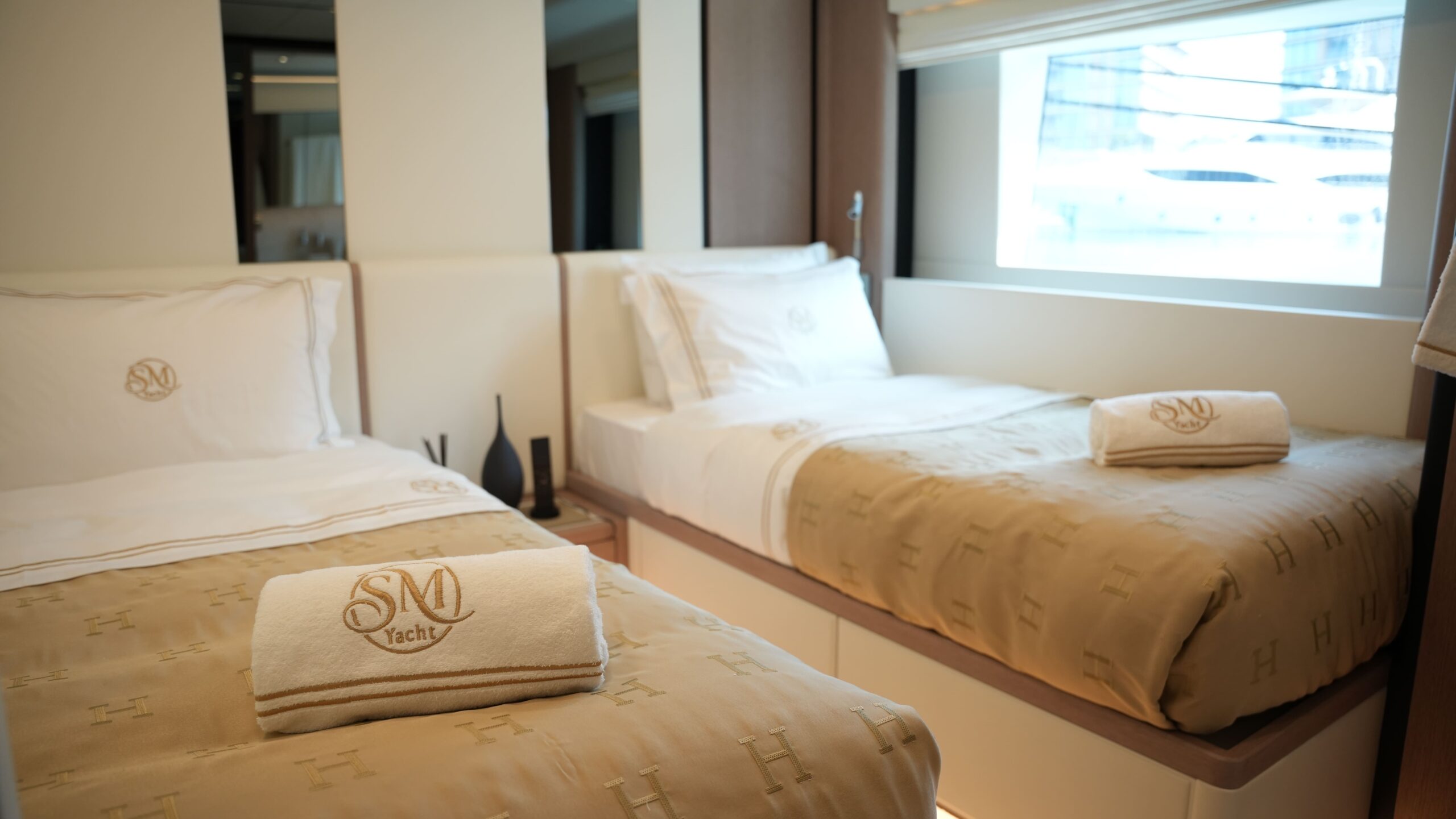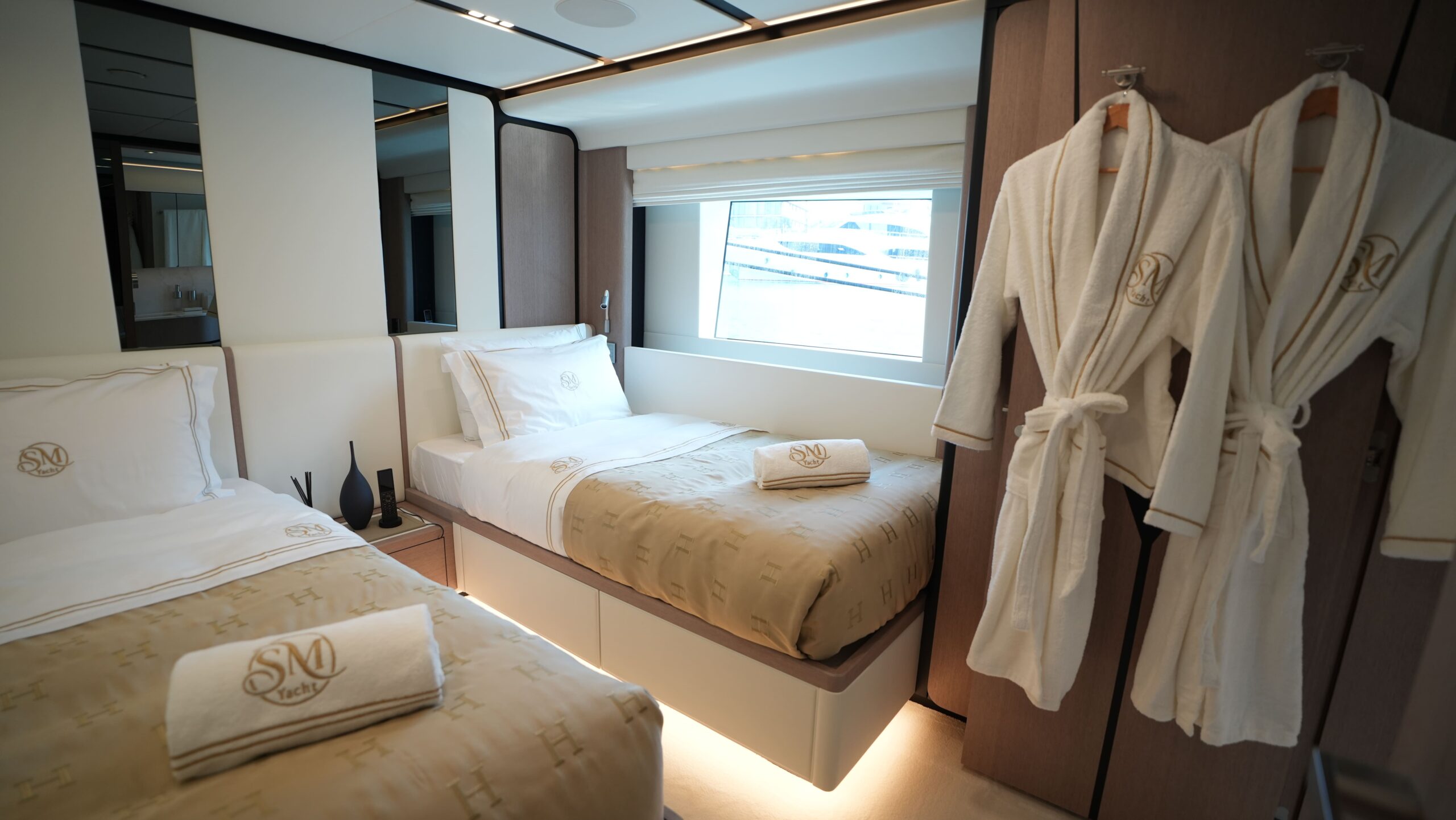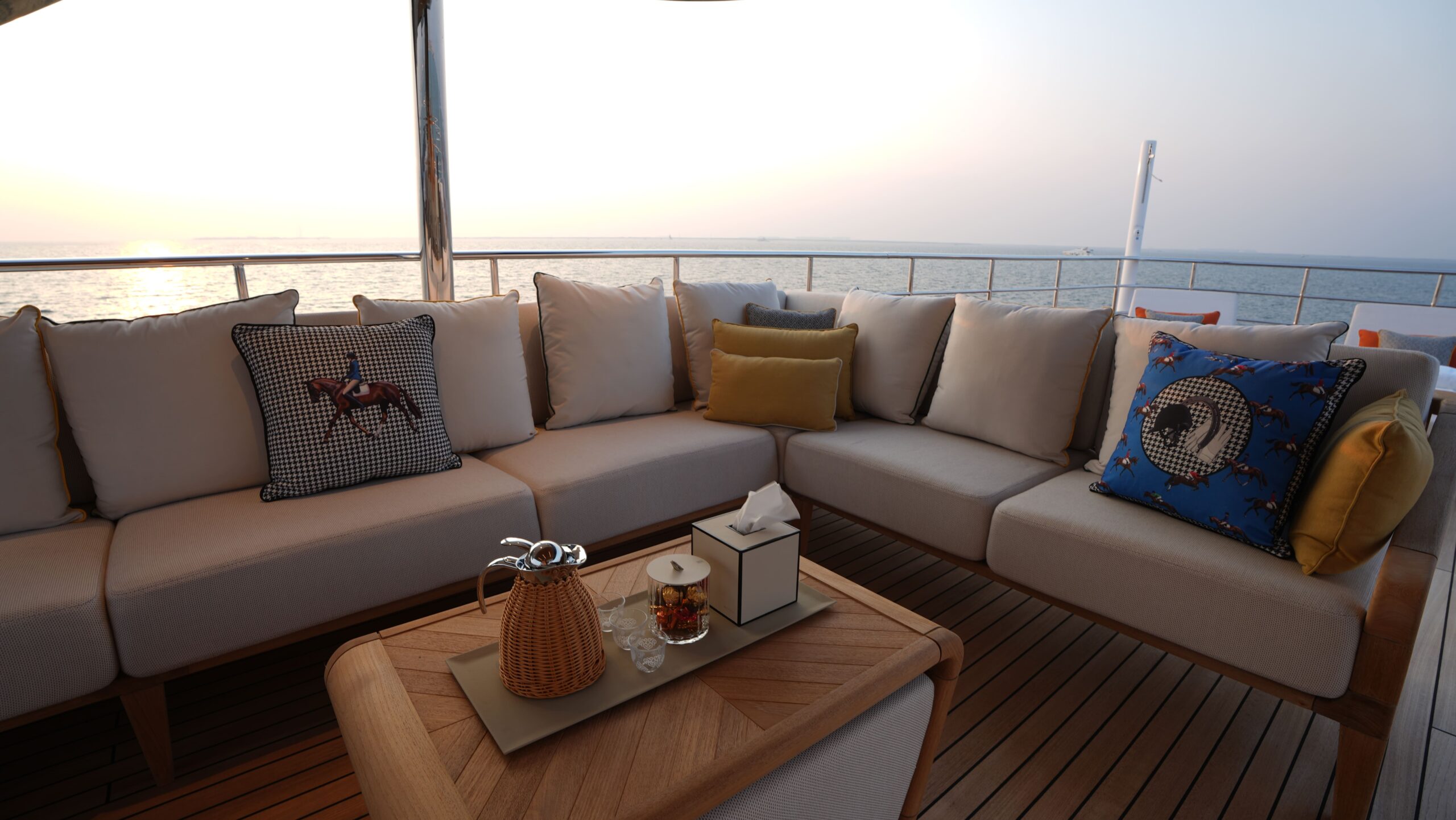 Aggressive lines and a demanding profile define the Majesty 120, with the signature Majesty Yachts windows lining the hull. Extensive use of glass offers an unparalleled connection to the outdoors with low bulwarks allowing for an ornamental glass railing design. Amongst the standout features onboard the new Majesty 120 is a Jacuzzi situated on the sun deck. For optimal guest comfort, there are six cabins, including a full-beam master cabin on the main deck, a rare feature for super yachts of this length. This superyacht boasts 30% larger outdoor entertainment areas compared to any other yacht in its class.