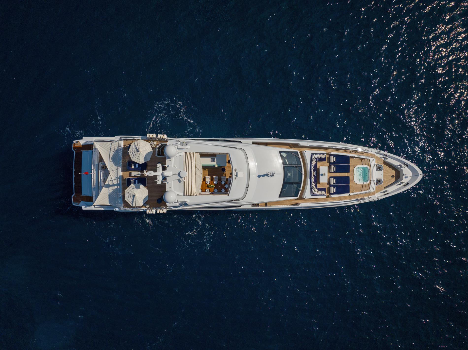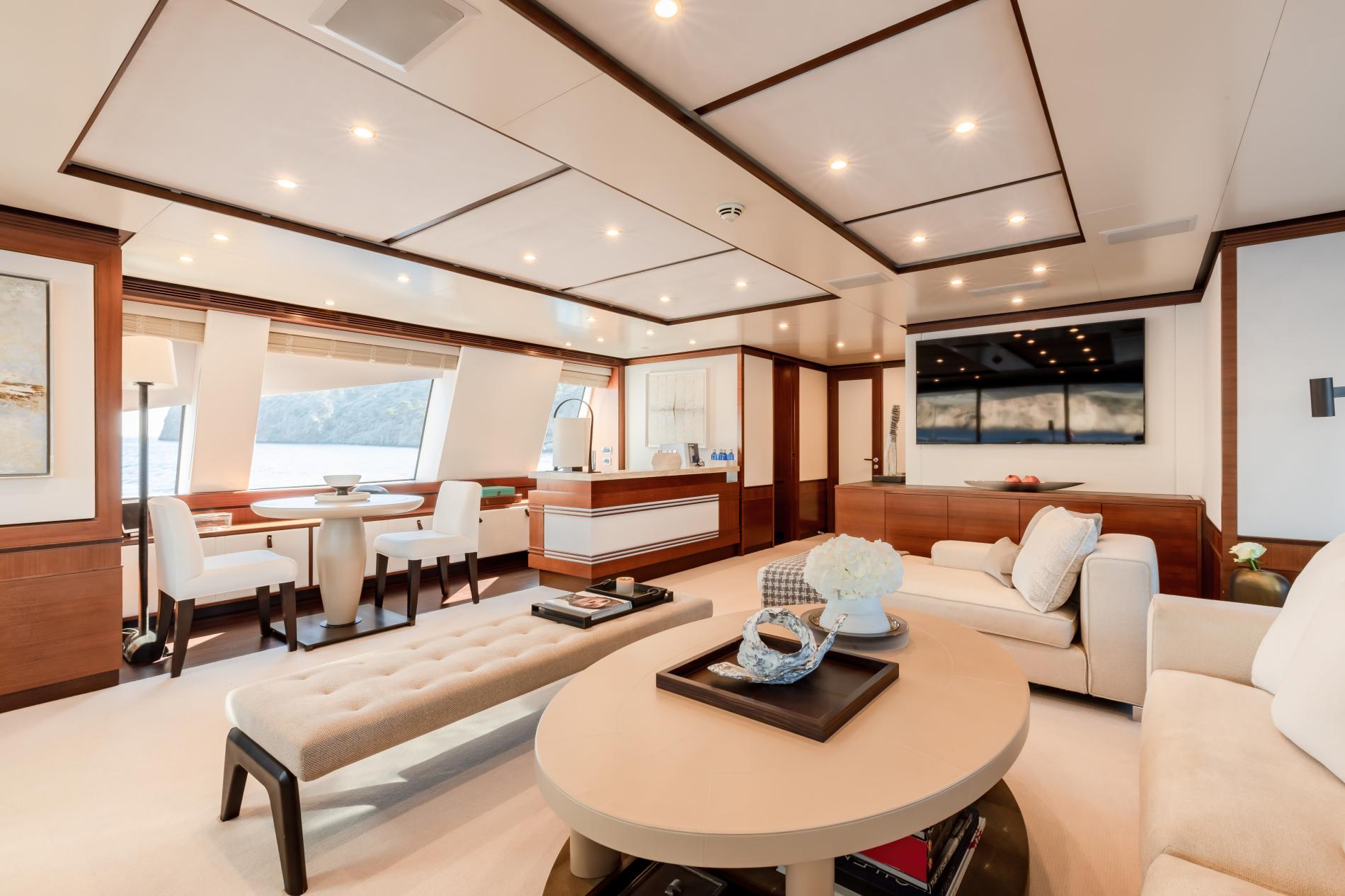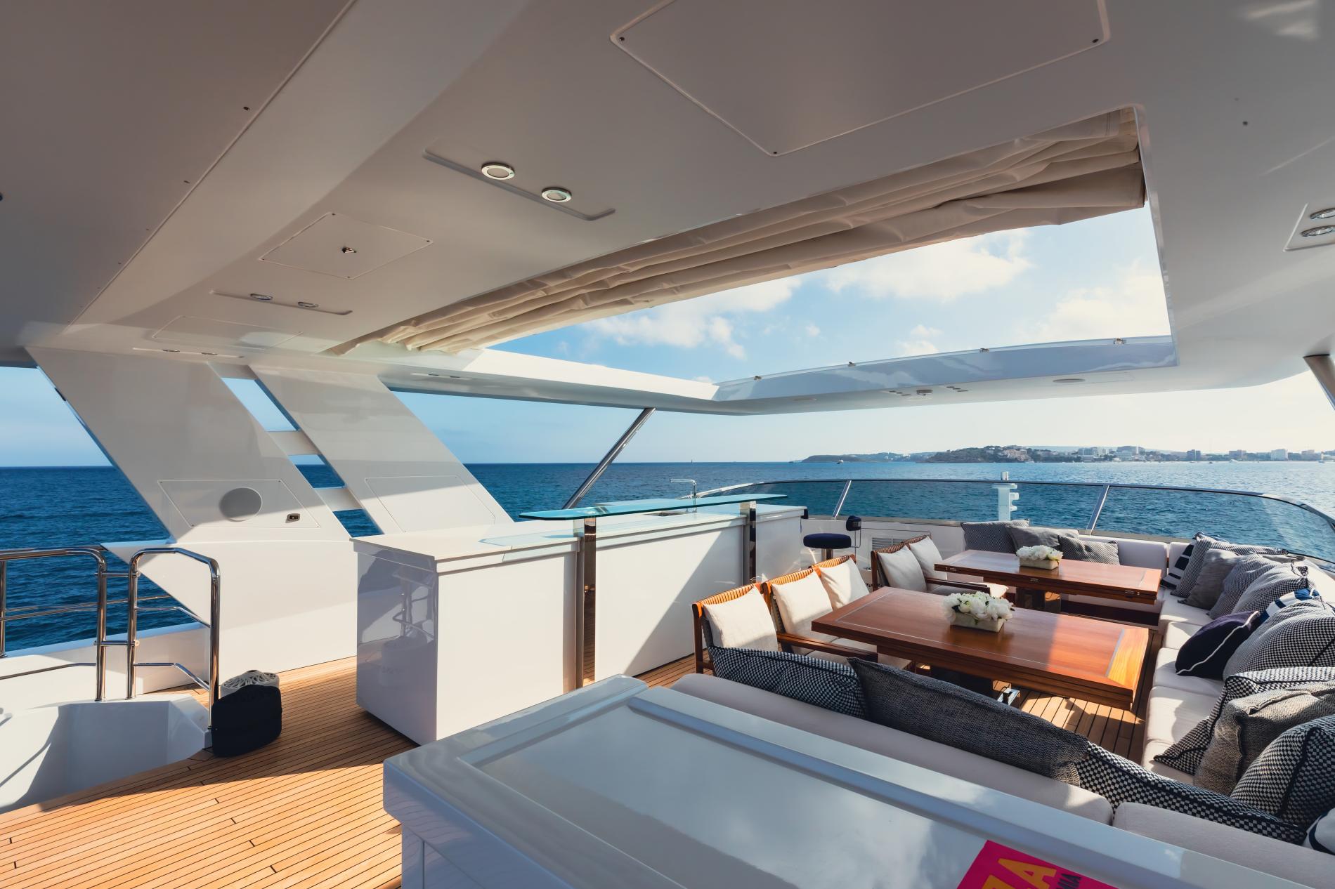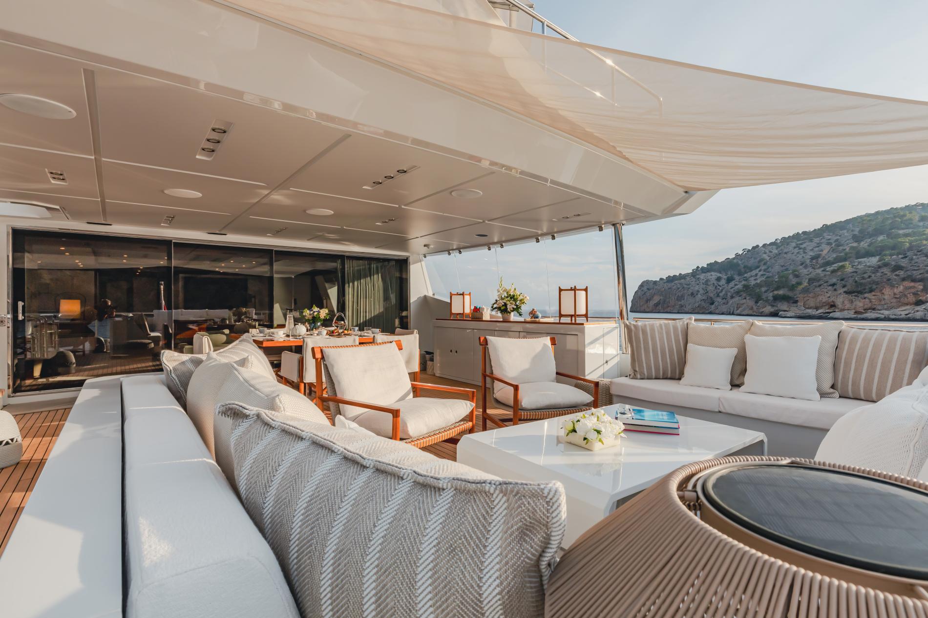 From the expansive sundeck complete with dining, lounging, and bar areas to a stylish beach club with a large swim platform, NEW WAVES is made for outdoor living. Guests can soak in the Jacuzzi on the foredeck or enjoy panoramic views across multiple open-air lounges.