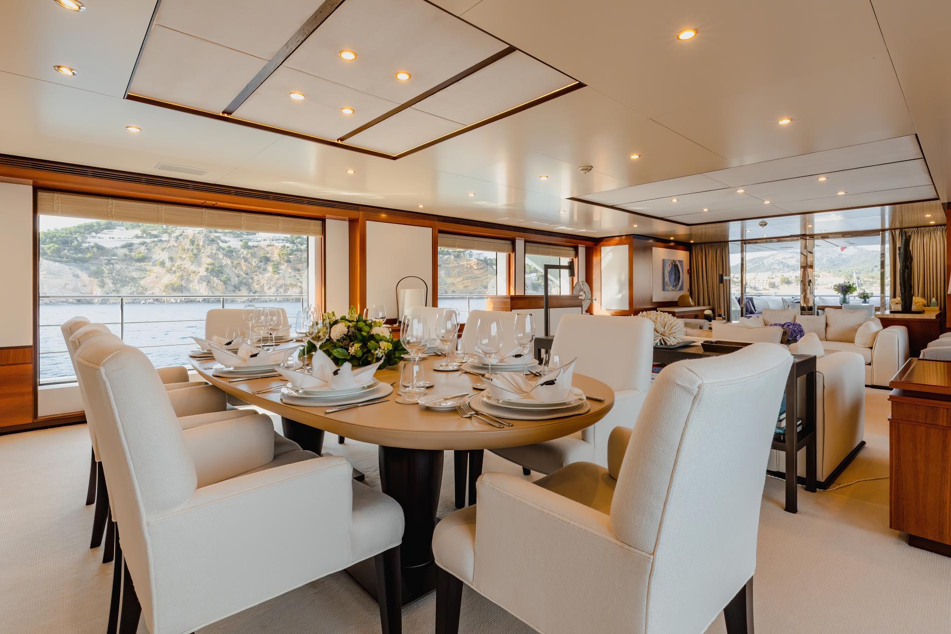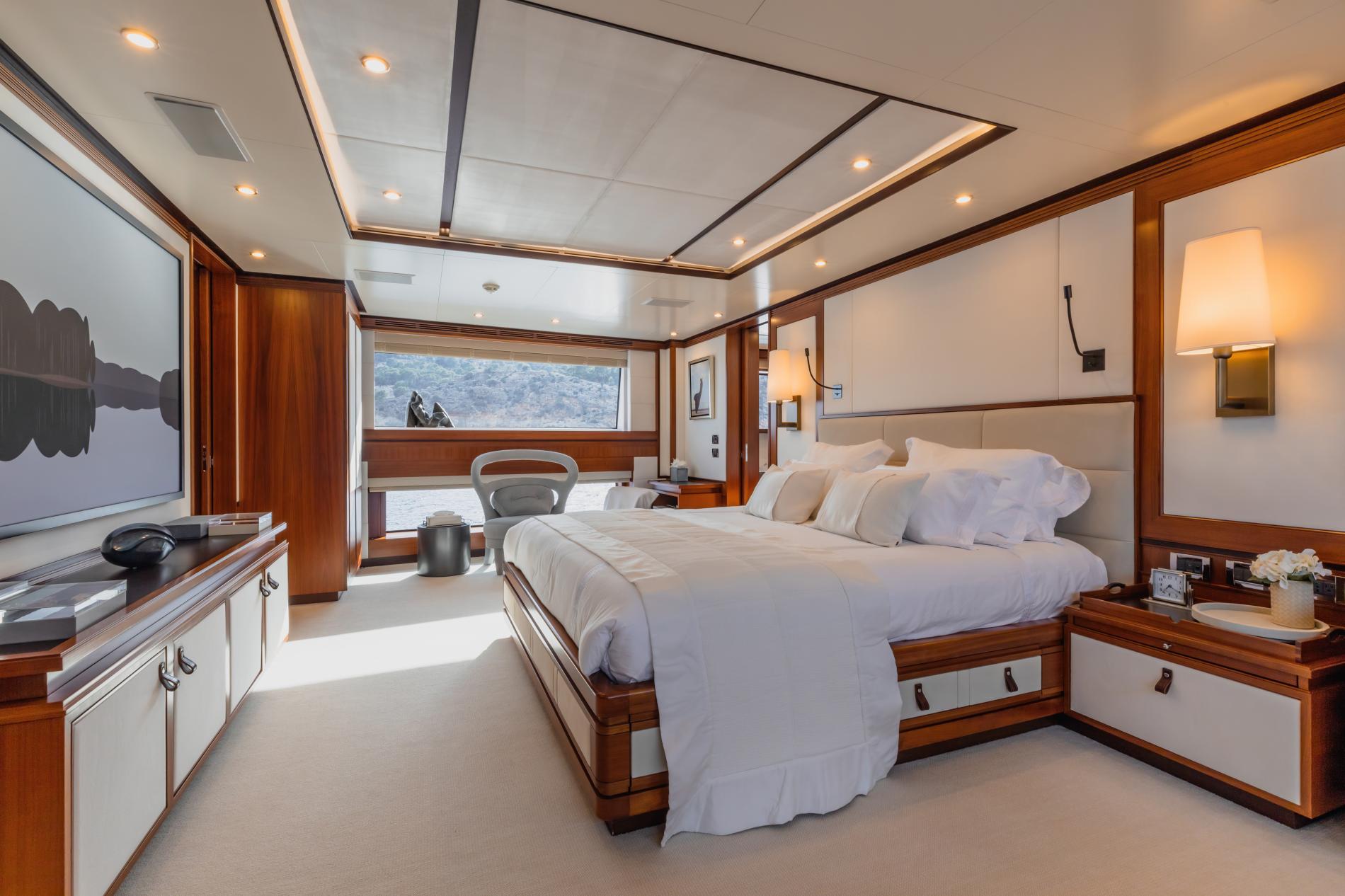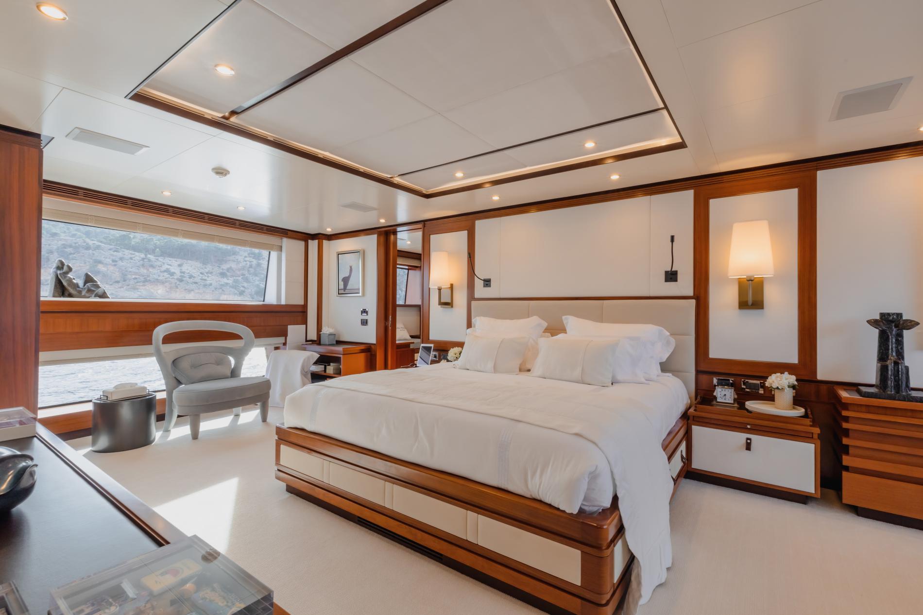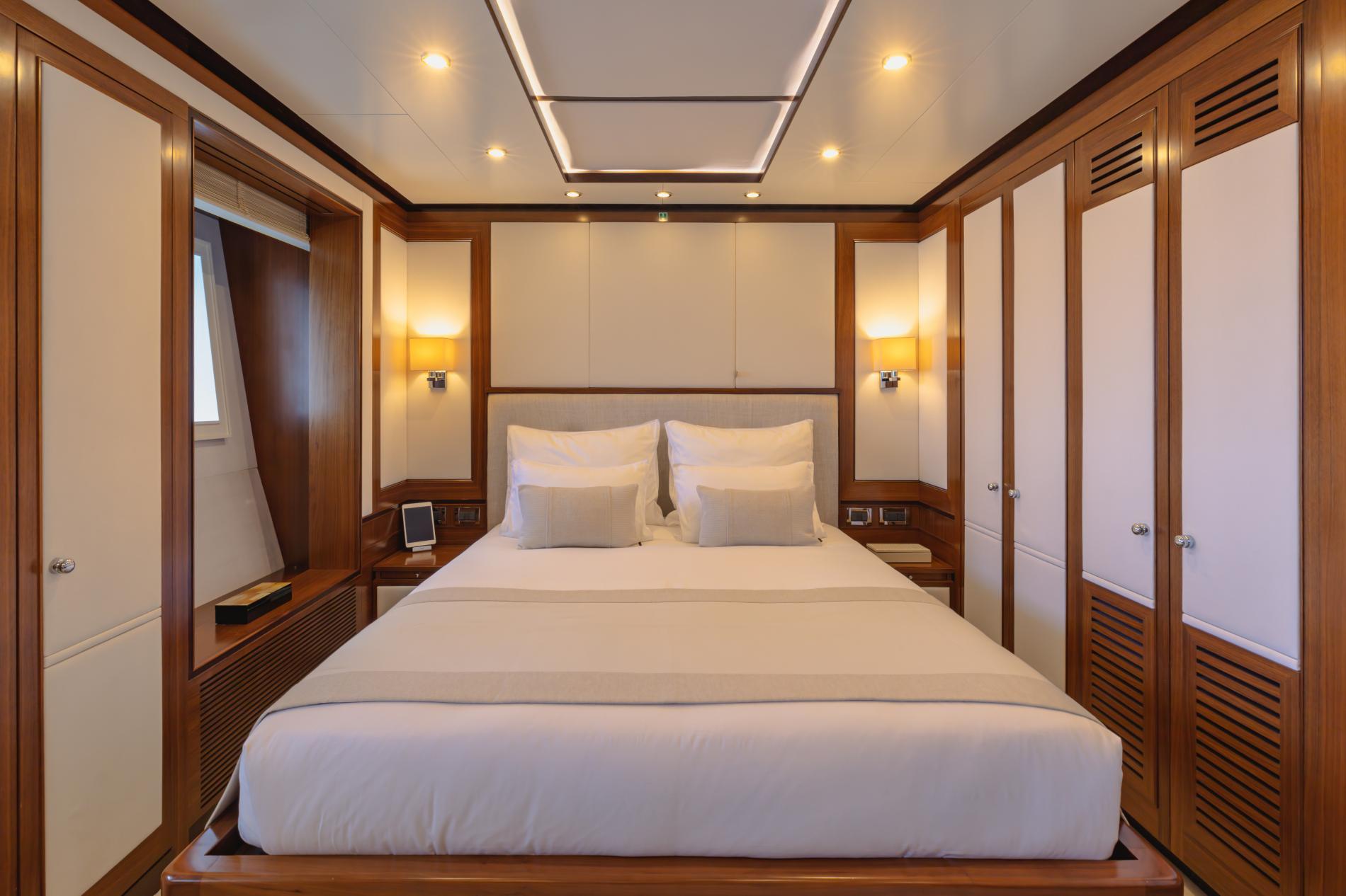 The interior is thoughtfully designed with bright, sunlit spaces and natural tones that mirror the serenity of the Mediterranean lifestyle, enhanced with chic touches by Wolterinck in 2017. Accommodating 10 guests in 5 cabins, including a full-beam master suite, she ensures comfort and privacy.