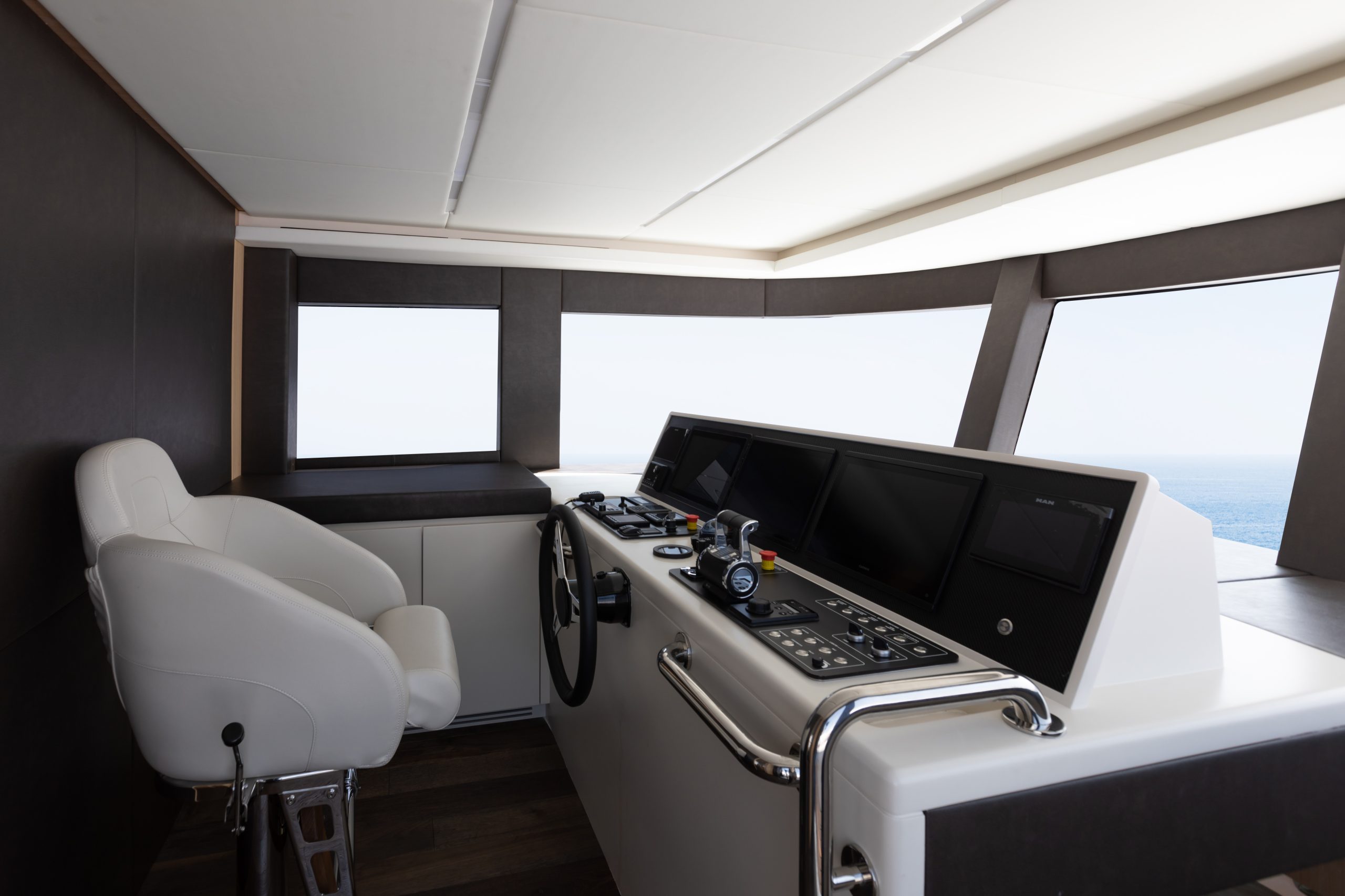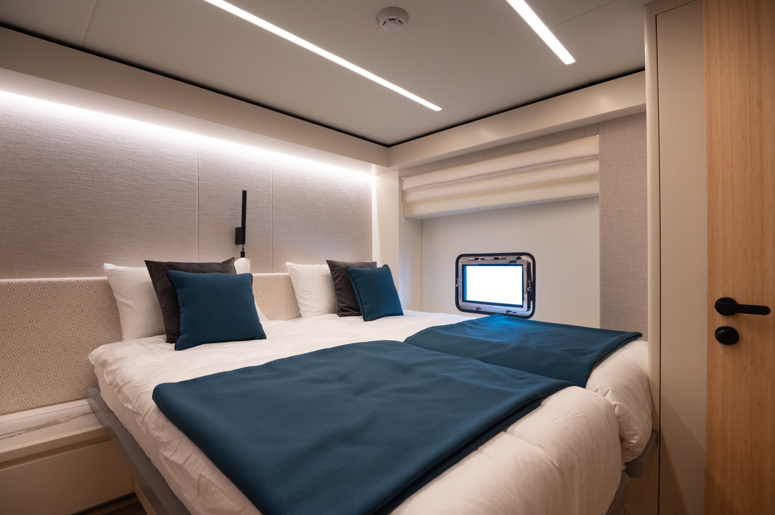Life on board centres around spacious social zones that seamlessly connect indoors and out. The aft cockpit, open-plan salon, and versatile skylounge create flexible environments for dining, entertaining, or relaxing. The full-beam owner’s suite, with wrap-around windows and 270-degree views, offers a serene private retreat, while four additional ensuite cabins ensure guests enjoy comfort and privacy. With her combination of performance, style, and practical luxury, the Nomad 70 SUV redefines what a mid-size explorer yacht can deliver.
