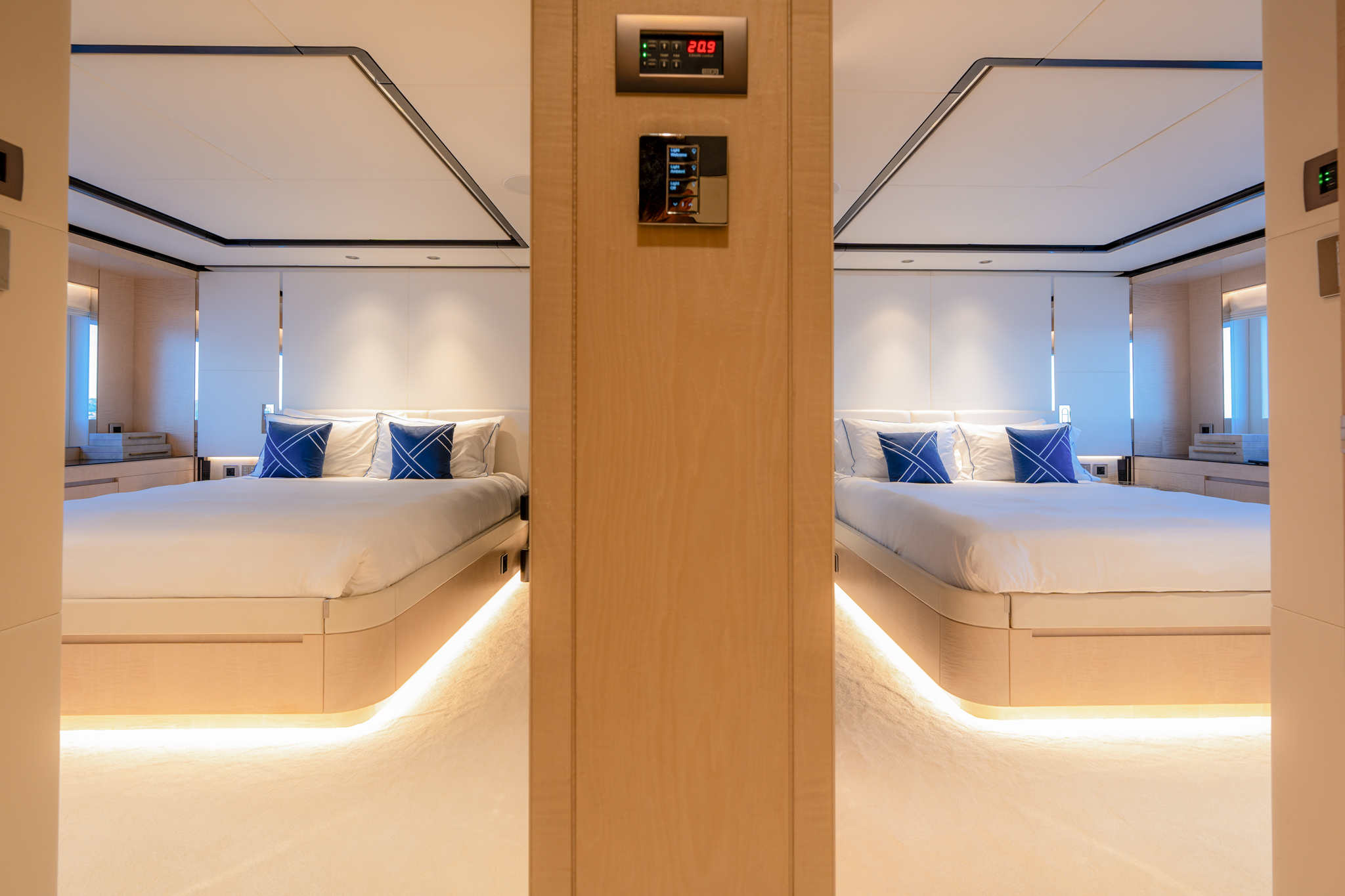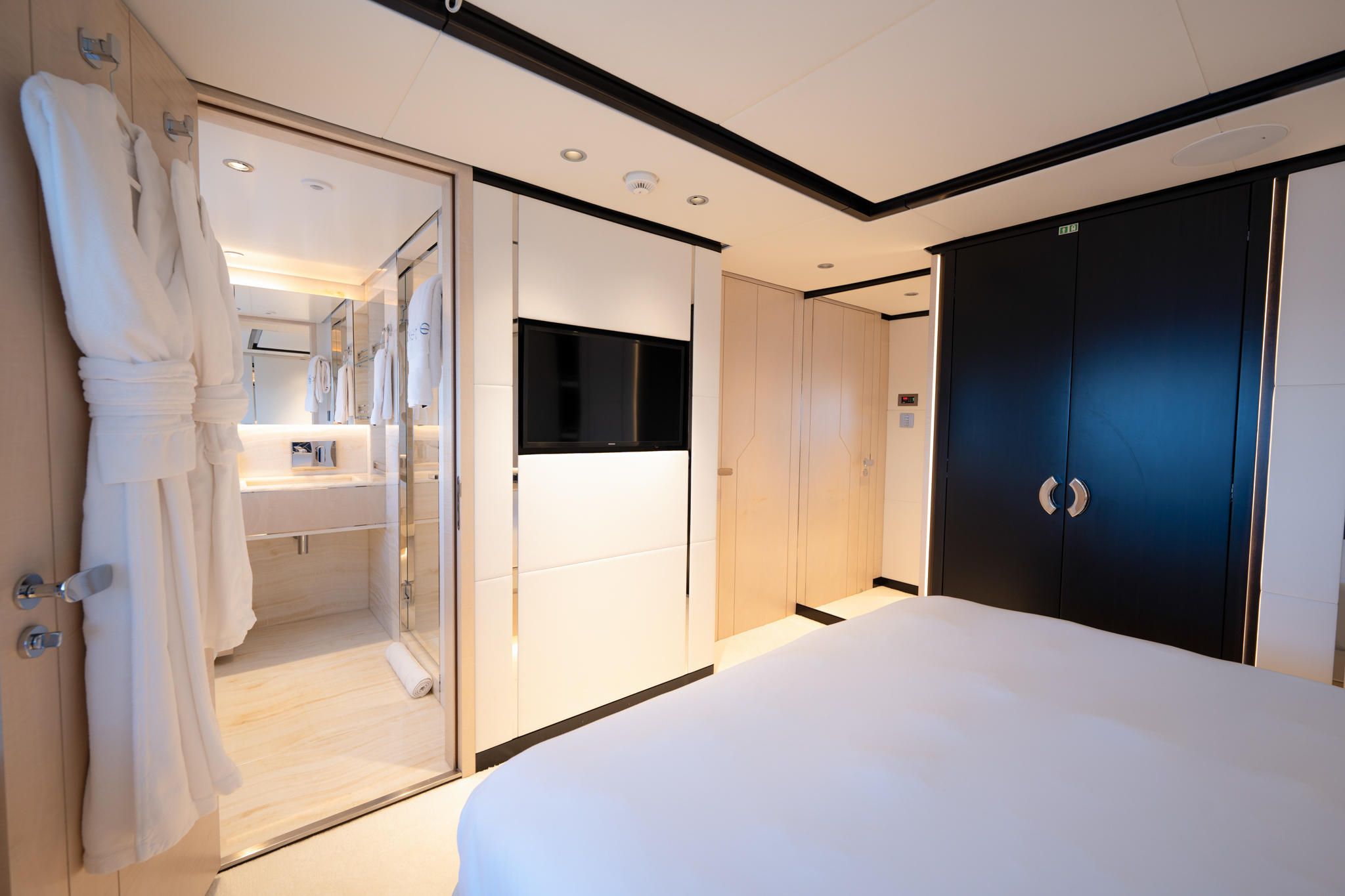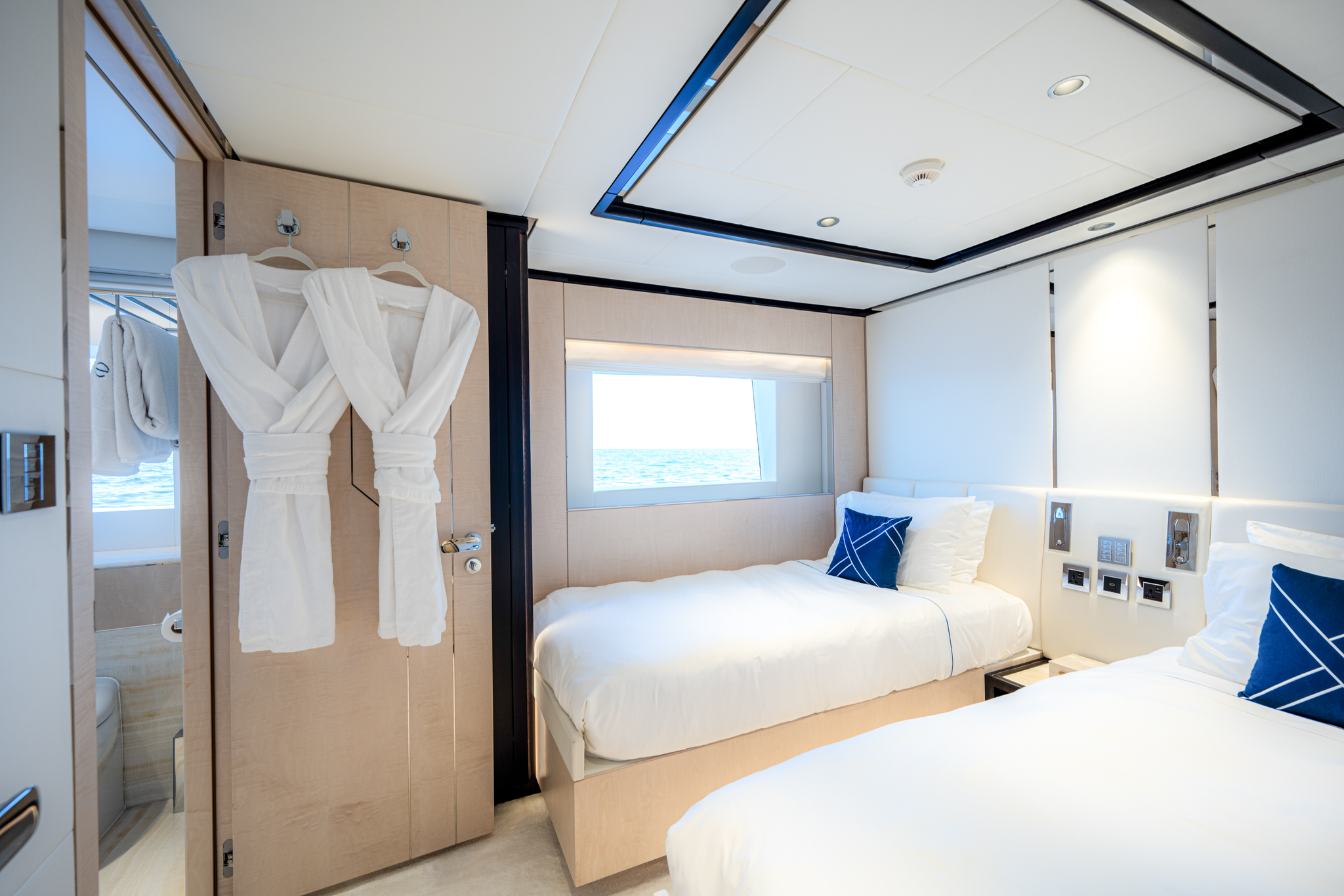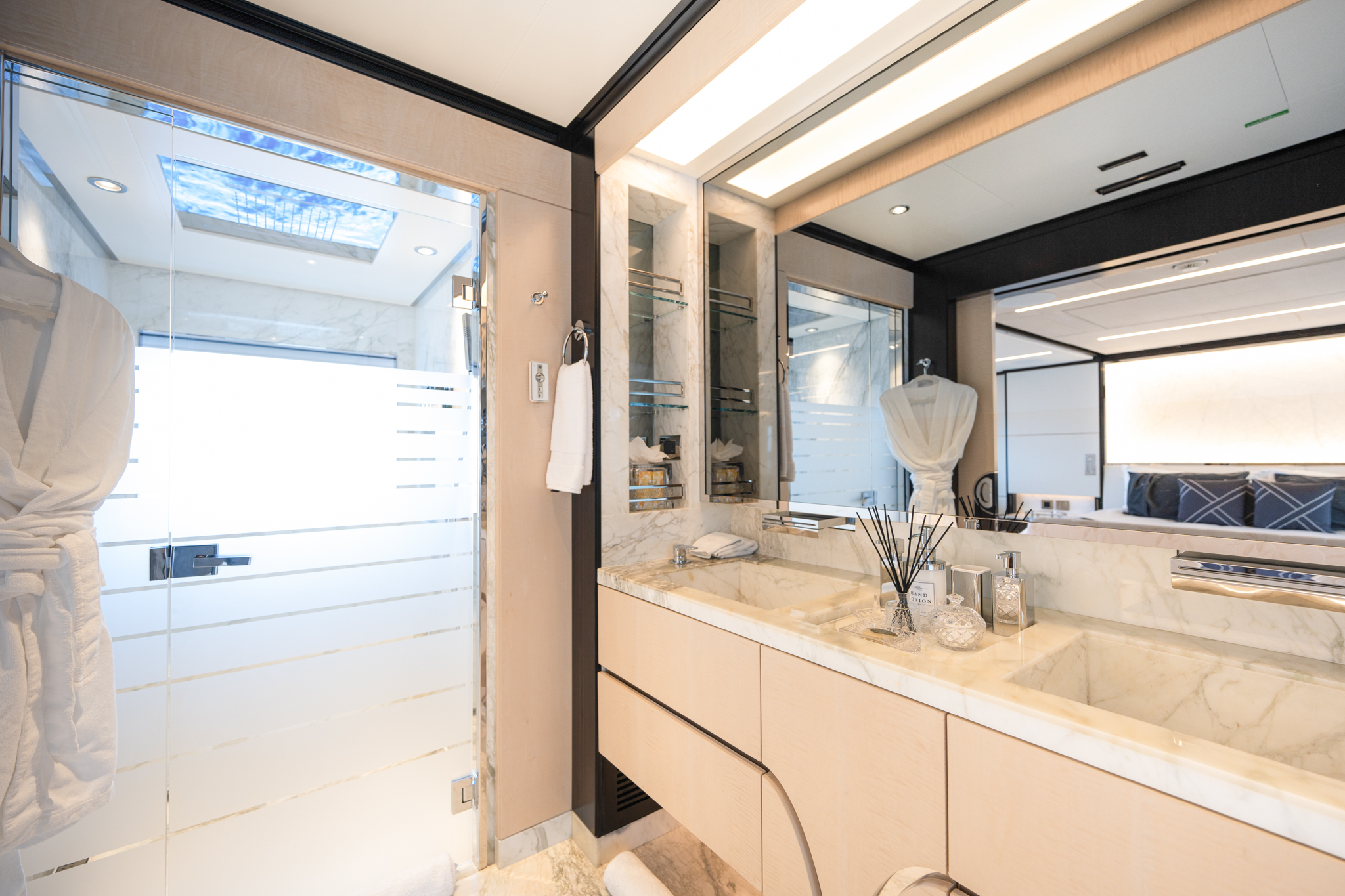 Aggressive lines and a demanding profile define the Majesty 120, with the signature Majesty Yachts windows lining the hull. Extensive use of glass offers an unparalleled connection to the outdoors with low bulwarks allowing for an ornamental glass railing design. Amongst the standout features onboard the new Majesty 120 is a Jacuzzi situated on the sun deck. For optimal guest comfort, there are six cabins, including a full-beam master cabin on the main deck—a rare feature for super yachts of this length. This superyacht boasts 30% larger outdoor entertainment areas compared to any other yacht in its class.